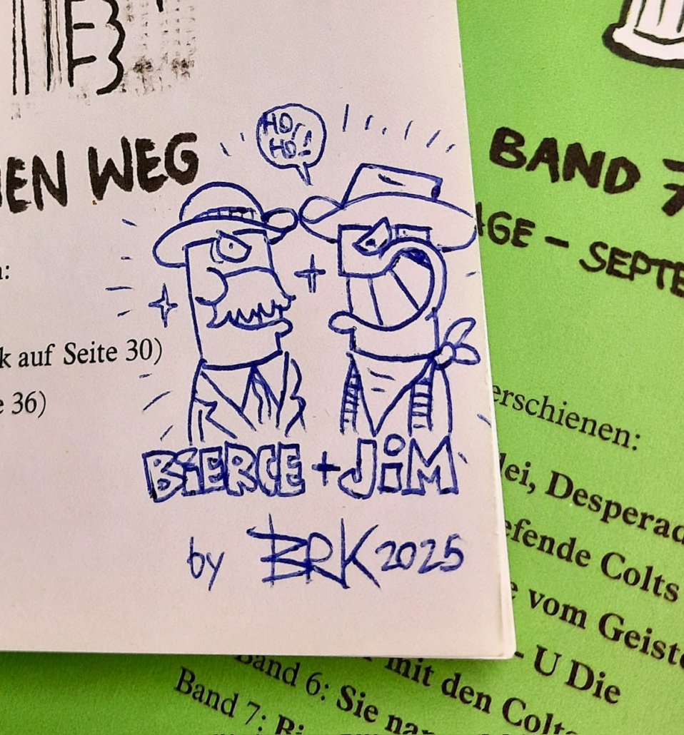 Wer bis spätestens MORGEN Mittwoch dem 1.10. ein oder mehrere Hefte von COWBOY JIM bestellt, bekommt dieses im Rahmen unserer Signieraktion mit dem Autor ebenfalls signiert, persönlich gewidmet und bezeichnet wie hier abgebildet:
