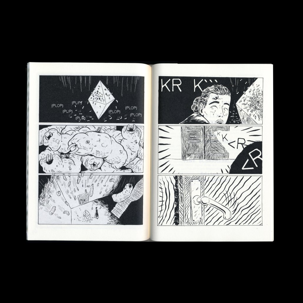 An einem Frühlingstag 2019 sitzen die ComickünstlerInnen Vinz Schwarzbauer, Carina Riemenschneider, Lenz Mosbacher, Simon Hanzer, Janne Marie Dauer und Nina Buchner im Café Zartl und tauschen sich über Comics aus. Gesprächsthema sind die unterschiedlichen Arbeitsprozesse. Manche schreiben detaillierte Skripten, andere zeichnen alles in einem Guss, viele feilen lange an den einzelnen Zeichnungen. Was üblich in der europäischen Comic Undergroundszene ist, verhält sich in den Mainstream Comics der USA und Japans ganz anders. Dort sind Comics seit langem Teamarbeit. Eine Künstlerin schreibt die Story, eine zeichnet sie vor, eine tuscht sie, eine lettert und eine lektoriert sie. Die KünstlerInnen