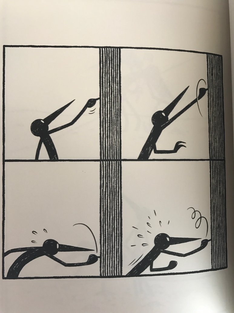 Ausgehend von Plinius‘ Fabel erzählt Max eine Geschichte, in welcher der Erzählfaden und der Umriss ein und dasselbe sind, und entwirft einen freien visuellen Fluss, in dem die Zeichnung für sich und über sich selbst spricht.