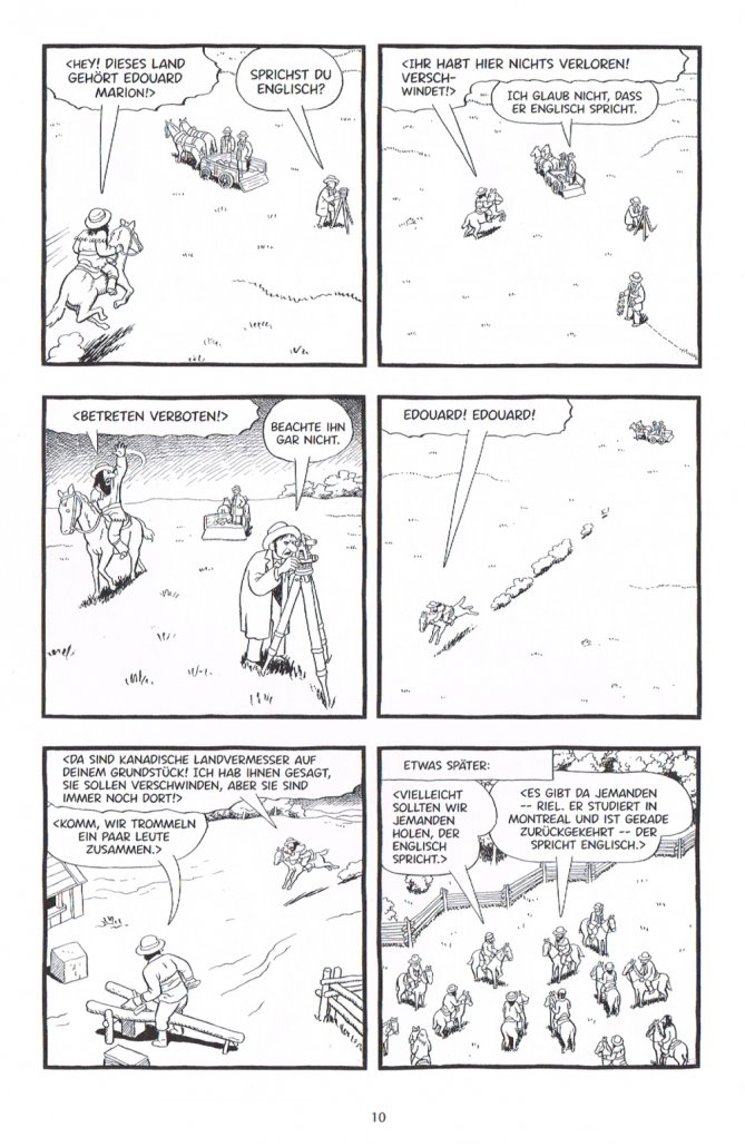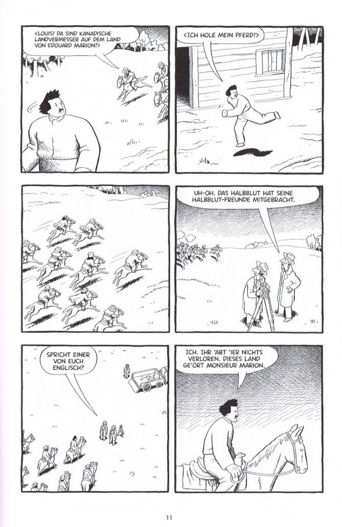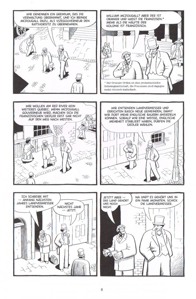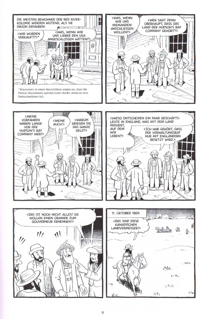 Louis Riel (1844-1885) war ein kanadischer Freiheitskämpfer, der Ende des 19. Jahrhunderts zwei Aufstände gegen eine rassistische, englische Regierung anführte. Als Rebell und Politiker war er Gründer der heutigen Provinz Manitoba und eine Führungspersönlichkeit der Métis, also der Nachfahren europäischer Pelzhändler – insbesondere aus Frankreich, England und Schottland – und Frauen indigener Abstammung. Seine Hinrichtung 1885 löste mehrtägige Krawalle in ganz Quebec aus und wird bis heute von den Frankokanadiern als starkes Unrecht empfunden. Mittlerweile werden seine umstrittenen Handlungen als Grundlage für die Entwicklung der Rechte von Minderheiten und die Kooperation verschiedener Kulturen in Kanada anerkannt, auch dank dieser anspruchsvollen und meisterhaft erzählten Biografie des Comic-Autors Chester Brown, die als meistverkaufte kanadische Graphic Novel gilt.