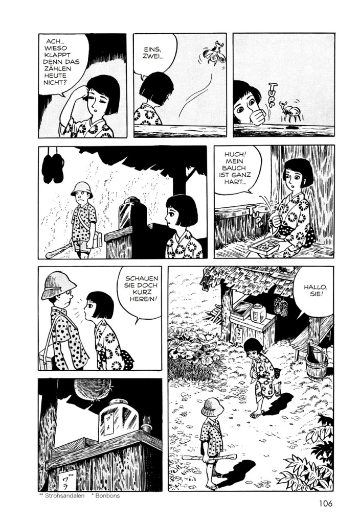 Yoshiharu Tsuge erweckt die Szenen der titelgebenden Geschichte mit einer Leichtigkeit zum Leben, die einen die Hitze und die Geräusche des Waldes unmittelbar spüren lassen.