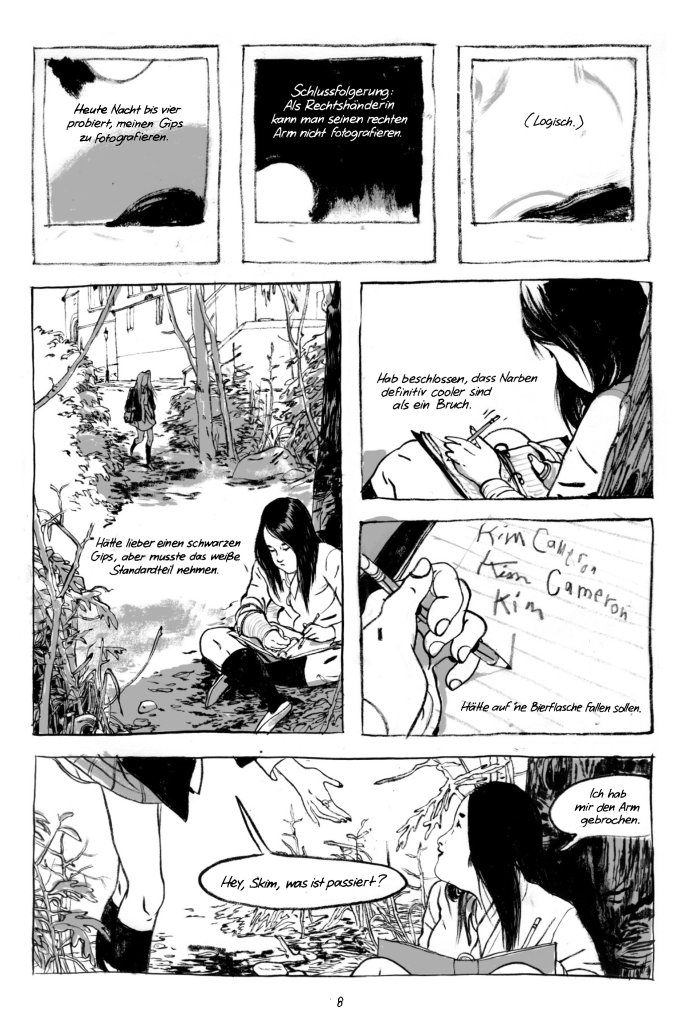 Sexuelle Identität, Liebe, Depression, Cliquendrama und Gruppenzwang – „Skim“beschreibt das Teenagerdasein in all seiner Komplexität und gewährt einen authentischen Einblick in die Welt und den Herzschmerz einer Sechzehnjährigen.