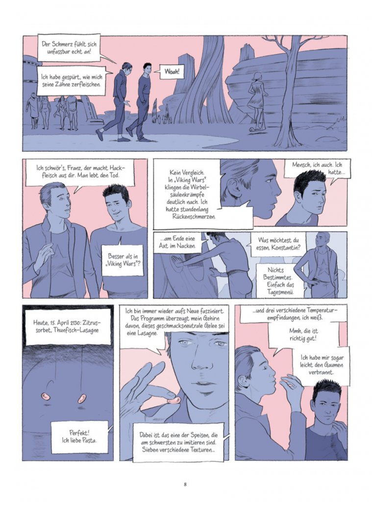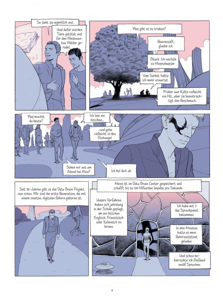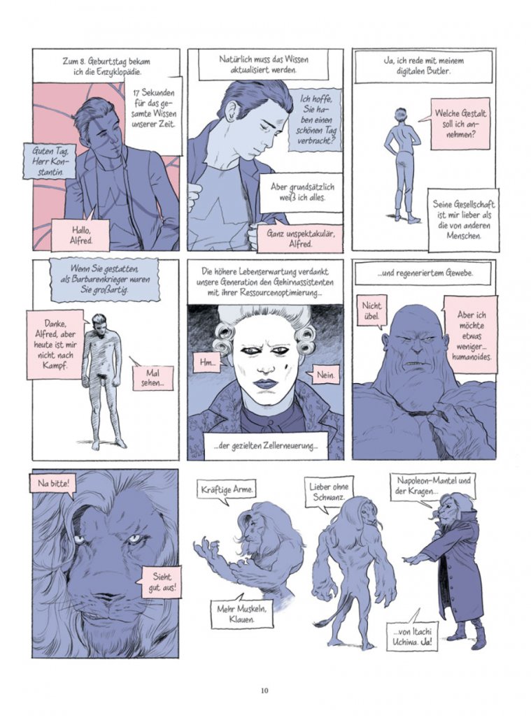 Perfekte Menschen leben in einer perfekten Welt in Saus und Braus und mit Chips für alles Mögliche im eigenen Kopf und Körper – zumindest die Menschen, die ‚drin‘ sind, wie Konstantin. Bis er plötzlich ‚draußen‘ ist. Jetzt muss er alles neu lernen. Dass man eine Giftschlange nicht streichelt oder was eine natürliche Frau ist – und wozu sein Dasein überhaupt gut ist…