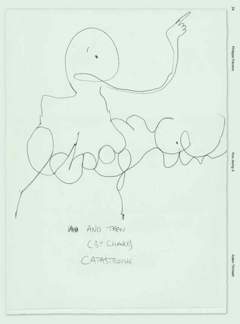 Ein denkender Blumentopf, eine Casio-Echse oder eine Augapfel-Hängematte: ‚Cadavre exquis‘ heisst das lustvolle Spiel mit gefaltetem Papier, das einst die Surrealist*innen spielten. Mehrere Personen konstruieren zusammen eine Zeichnung, ohne dass die Mitspieler*innen den jeweils vorhergehenden Teil der Arbeit sehen. Wir falten das Papier auf und amüsieren uns über den kollektiven Nonsens. Kurator Hans Ulrich Obrist hat dieses Spiel in den letzten Jahren immer wieder gespielt – mit Dan Graham, Katharina Grosse, Pippilotti Rist, Gerhard Richter und vielen mehr. So sind an die 200 solcher Scribbles entstanden. Das Buch zelebriert die Handzeichnung in Zeiten von Voice Messages. Und vor allem ist es ein Aufruf, nicht nur die Zeichnungen anzuschauen, sondern es selbst zu tun. Zeichnen, falten, zeichnen, falten, zeichnen, falten!