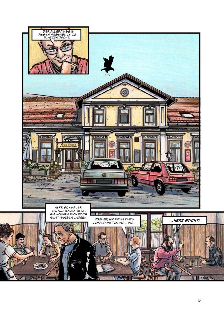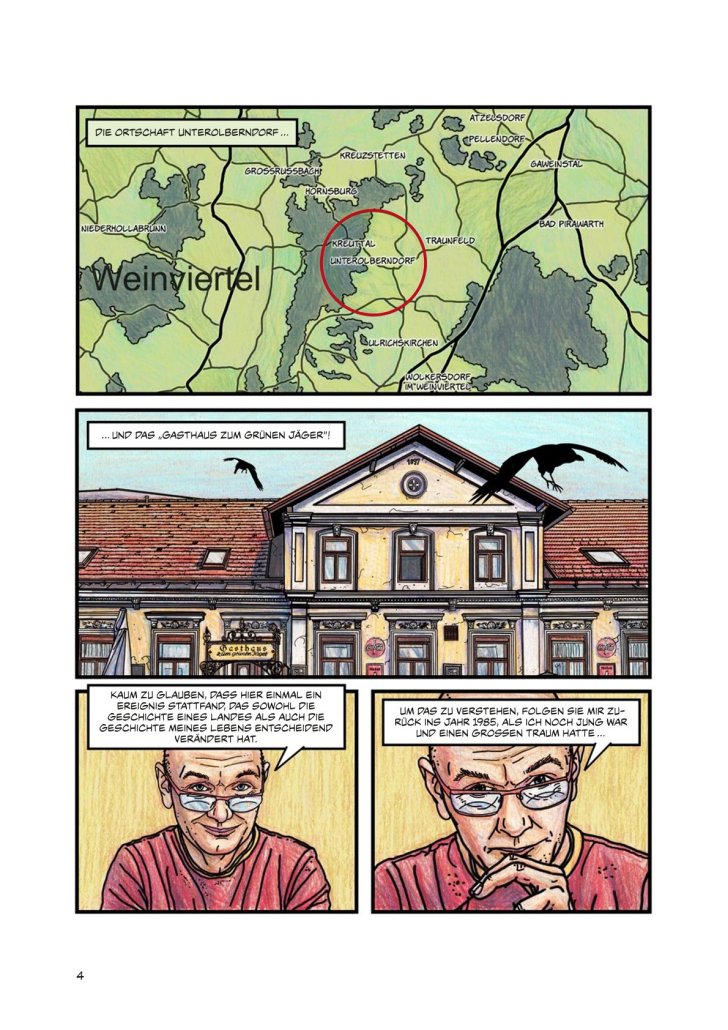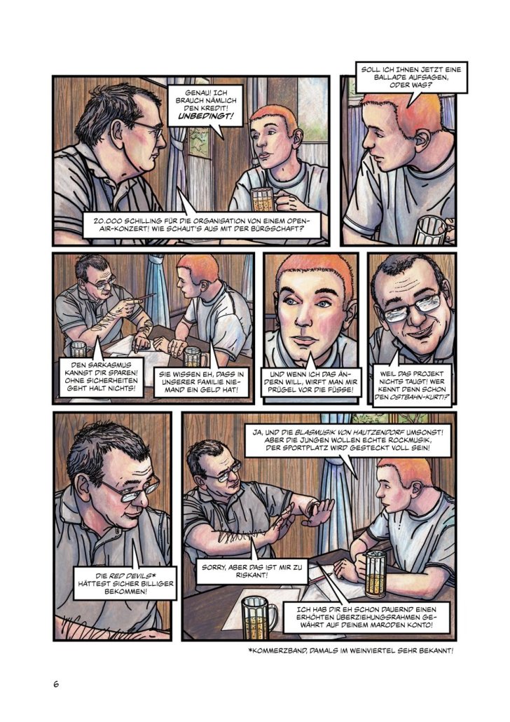 Retro kann so schön sein. Vor allem, wenn Stil, Setting und Story miteinander verschmelzen zu etwas, das größer ist als die vielzitierte Summe seiner Teile. Im Fall von Zehn Punkte für Uganda sind das: ein ebenso erstaunliches wie in seiner Entstehung kurioses historisches Faktum, eine Verbeugung vor dem viel zu früh von uns gegangenen Willi „Ostbahn-Kurti“ Resetarits, jede Menge Lokalkolorit und Achtziger-Feeling, eine Prise Landkrimi, ein Schäuferl Provinzposse sowie wohldosierte Beigaben von Witz, Romantik und Erotik. Erzählt wird die Geschichte auf maximal stimmige Weise: Nämlich aus der ganz persönlichen Perspektive des Autors bzw. des Zeichners, die wie die Protagonisten in ihre Vergangenheit eintauchen und sich mit viel Selbstironie über ihre diversen jugendlichen Torheiten lustig machen. Dabei hat man es nicht nötig, durch Verschachtelungen und Zeitebenen-Verwicklungen einer Pseudo-Komplexität Vorschub zu leisten und sich wichtig zu machen, sondern vermittelt ein Gefühl, als setze man sich mit einem guten Freund, den man lange nicht gesehen hat, auf ein gepflegtes Achterl auf der Sonnenterrasse zusammen. Old School sind denn auch die Zeichnungen und dennoch Putzker 2.0: Die ultraklare Linienführung mit sehr hartem Strich verdankt sich der Verbindung von klassischer Handarbeit und digitaler Nachbearbeitung, in Kombination mit aufwendiger Buntstift-Kolorierung ergibt sich ein vertrautes Bild – und ein überaus erfreuliches. Sieht doch der gute Freund auf seine alten Tage frisch aus wie ein Junger. So wie er sich wohl fühlt.
