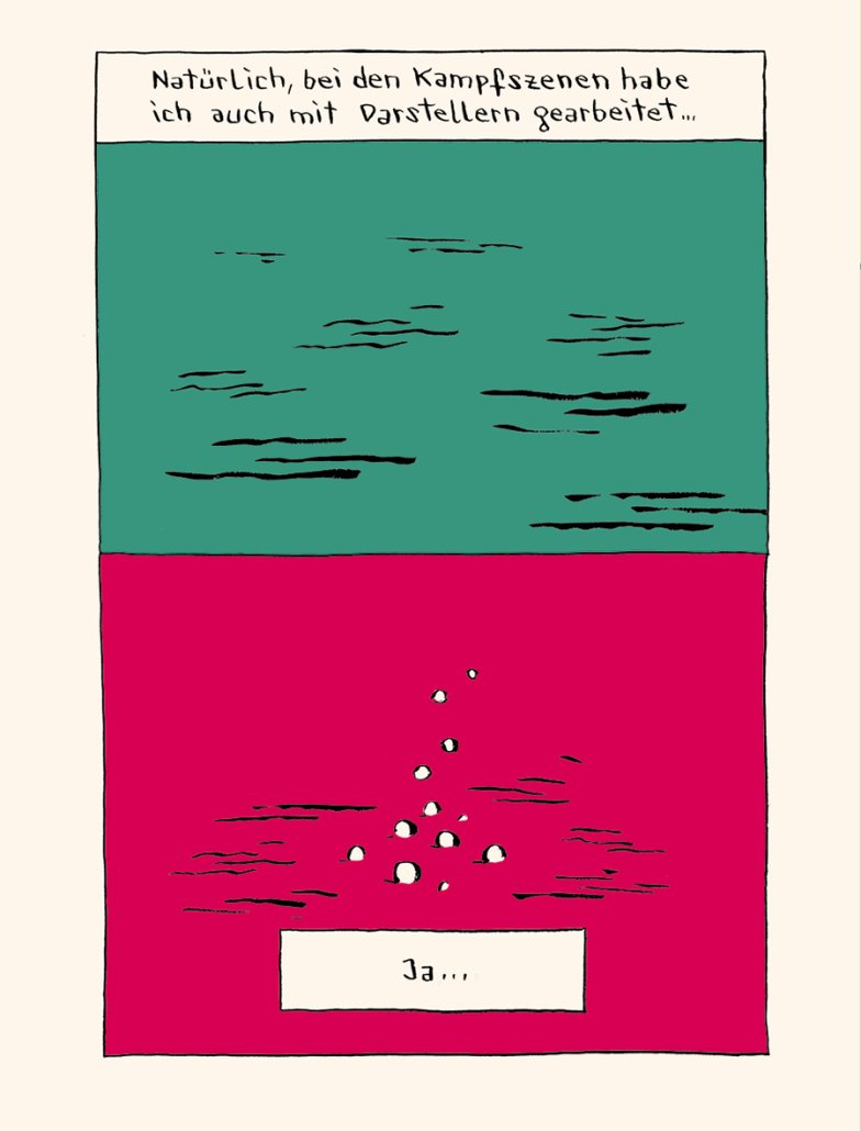 In seinem neuen Comic schaut Nicolas Mahler mit trockenem Humor hinter die Kulissen einer vergangenen Filmindustrie und erlaubt einen charmanten Blick auf die mu¨hsame Arbeit an der Kunst trashiger Monsterfilme. „Das Ritual“ ist inspiriert von der realen Person des Filmtrickmeisters Eiji Tsuburaya, der in Japan durch seine bahnbrechenden Effekte der fru¨heren „Godzilla“-Filme Heldenstatus genießt.