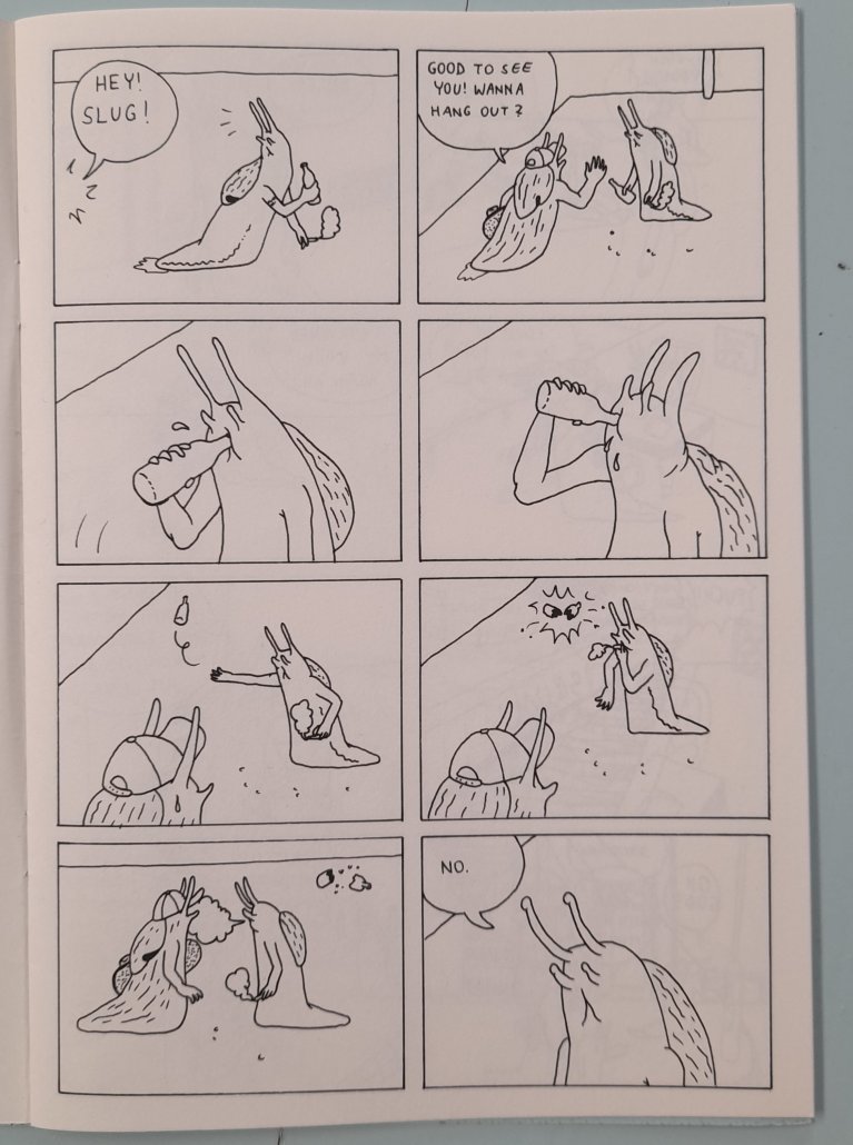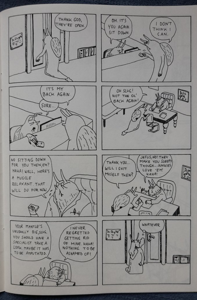 Der Protagonist Slug schleimt sich durch einen deprimierenden Alltag in der Großstadt, geplagt von Rückenschmerzen und belanglosen Liebschaften.