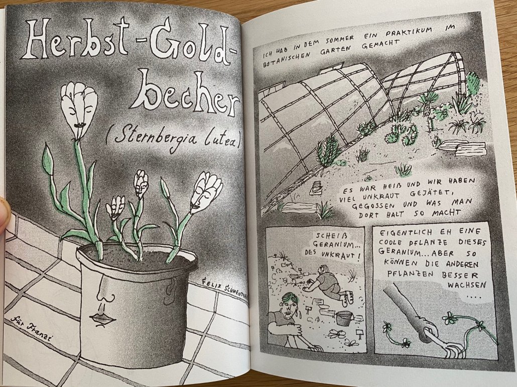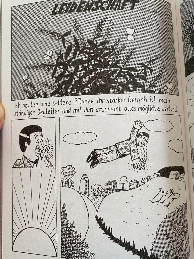 SPROSS MAGAZIN nennt sich die erfrischendste Comic-Anthologie, die je in Wien (und Kassel) herangezüchtet wurde. Unter der herausragenden Redaktion von Janne Marie Dauer und Karoline Achilles werden hier einige der kreativsten Stimmen des Austrocomics bzw. sonstiger naheliegender Comicnationen unter dem Motto „Eine seltsame Pflanze“ versammelt und in eine belebend poetische Abfolge gebracht. Es gibt ein Wiedersehen mit den Comictrieben von Burnbjoern, Nina Buchner, Jasmin Rehrmbacher, Lenz Mosbacher, Vinz Schwarzbauer und Janne Marie Dauer – ihre Gartenparty-Fantasia ist ein absolutes Highlight – und das Entdecken vieler neuer Talente, die da in den letzten Jahren herangekeimt sind! VORBEI DIE ZEITEN in denen die besten Indiecomic-Anthologien immer nur aus den USA kamen. SPROSS wurde übrigens von local heroes SOYBOT in Riso gedruckt, passend in monochromen Grün gehalten und ist der neueste Release der Wiener Edition Dostal.