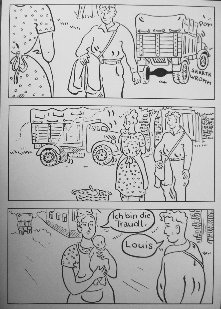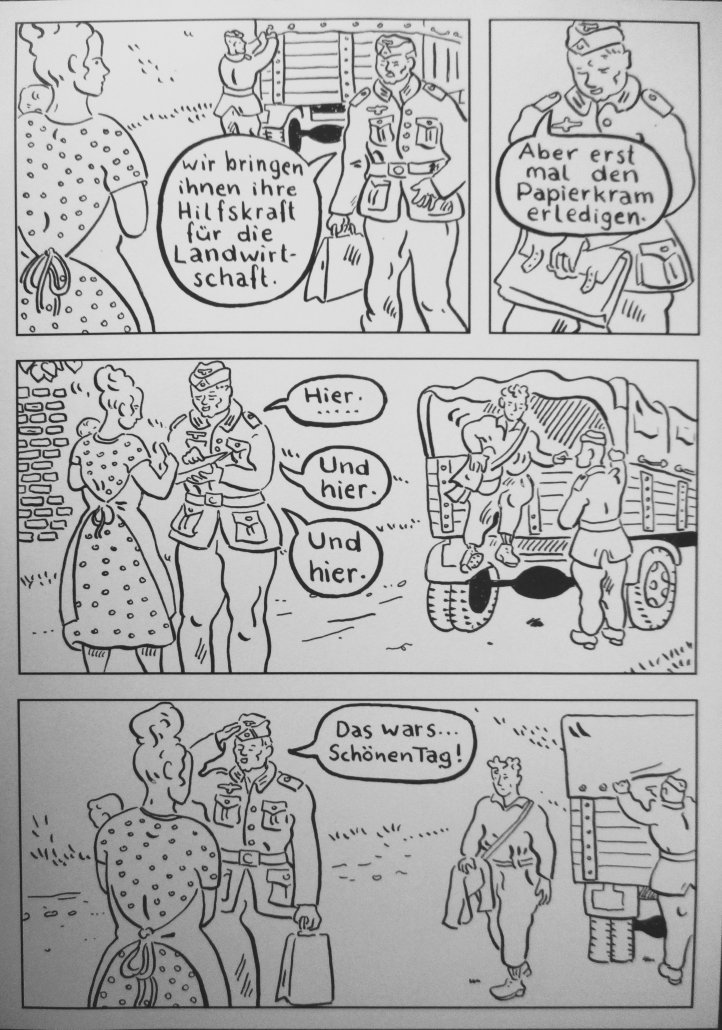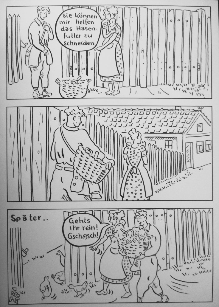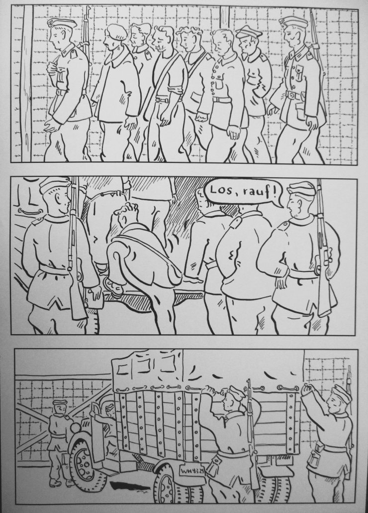 Albert Huspeka hat mit Hilfe der leider bereits verstorbenen Nachbarin – im Comic ein junges Mädchen – ihre Geschichte rekonstruiert.