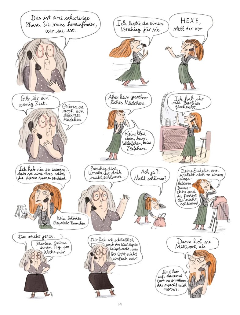 Mit ihren elf Jahren zeigt die kleine Gru¨na immer noch kein Talent fu¨r Hexerei. Schlimmer noch, sie will ein ganz normaler Mensch sein und interessiert sich mehr fu¨r die Jungen in ihrer Klasse als fu¨r Kräuter und Hexenkunst. Und den Zaubertrank, den ihre Mutter zu Hause braut, um den Nachbarshund zu vergiften, nennt Gru¨na „Suppe“. Ihre Mutter ist entsetzt. Es ist sehr wichtig fu¨r eine Hexe, das Handwerk an ihre Tochter weiterzugeben! In ihrer Not beschließt sie, Gru¨na einen Tag pro Woche ihrer Großmutter zu u¨berlassen, damit sie Gru¨na die Grundlagen der Hexerei beibringt. Schon nach der ersten Sitzung sind die Ergebnisse hervorragend! Ja, sie u¨bertreffen geradezu die Erwartungen von Gru¨nas Mutter. Vielleicht sogar ein bisschen zu sehr…