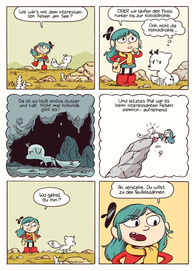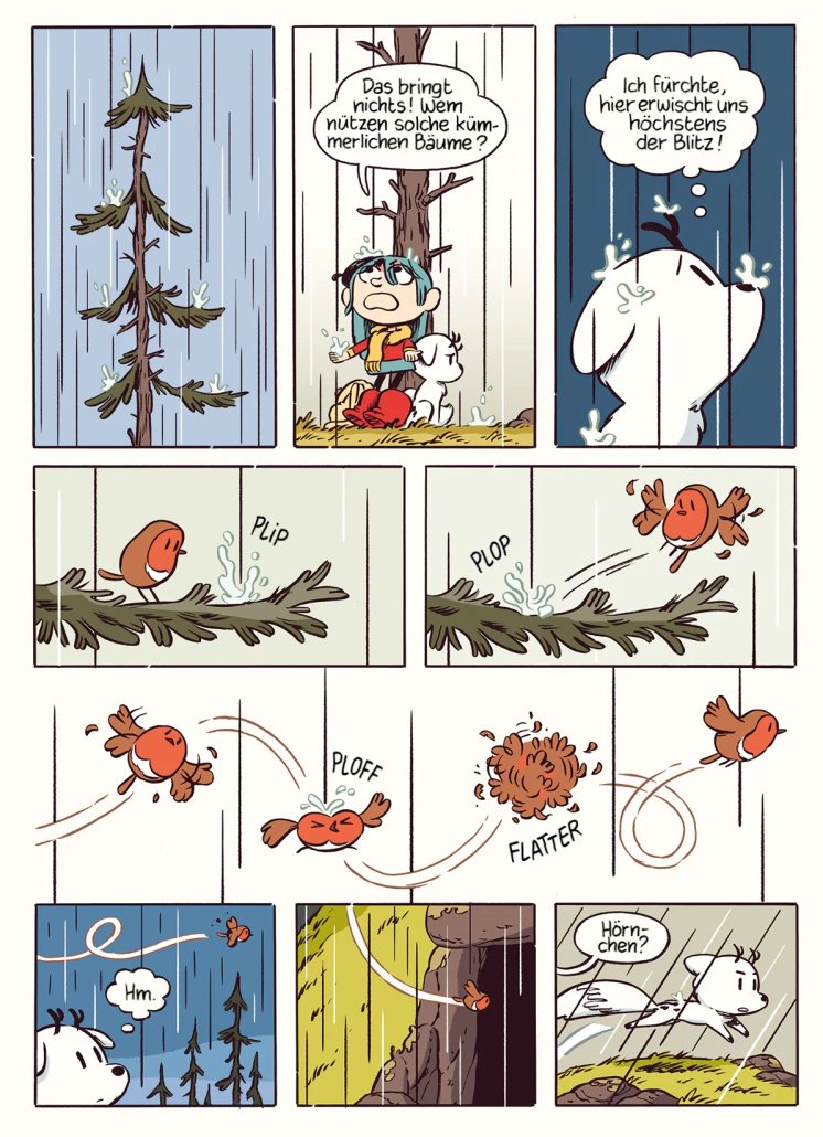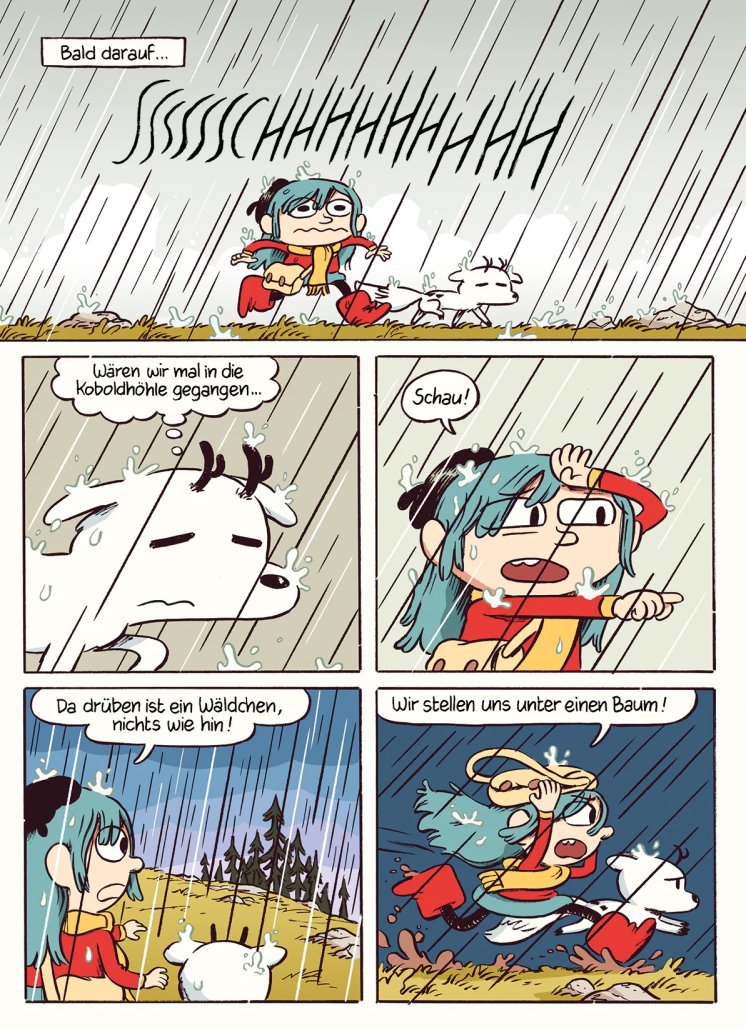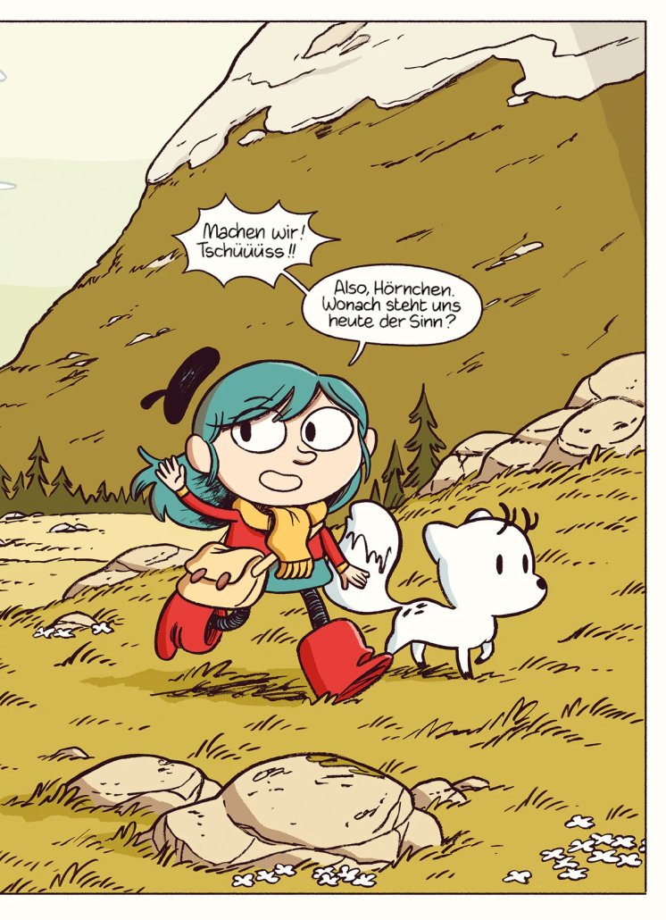 Ein bisschen Regen könnte Hilda und Hörnchen niemals von ihren Abenteuern abhalten. Anders sieht es allerdings aus, wenn ein heftiger Sturm sie mitten in ihrer Walderkundung erwischt. Als sie sich in einem geheimnisvollen Erdhügel verstecken, merkt Hörnchen schnell, dass etwas im Busch ist – seine blauhaarige Freundin ist in Gefahr! Für den Mutigsten hat Hörnchen sich noch nie gehalten, und nun sieht es so aus, als müsste ausgerechnet er Hilda vor einer ganzen Horde großer, schuppiger Probleme bewahren…