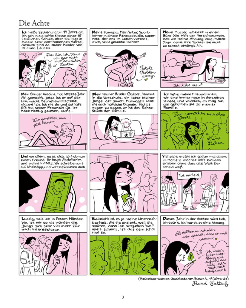 Esther geht in die achte Klasse! Sie ist in einer Beziehung mit Abdelkrim (sorry, das ist privat!), organisiert ihre erste große Geburtstagsparty (mit Alkohol, ja, Alkohol!) und erstellt (endlich!) ihr Instagram-Profil, das unweigerlich Psychopathen anzieht. Unwohl fühlt sie sich seit dem Tod von George Floyd auch, wann immer sie einem Polizisten begegnet (wo bleibt eigentlich die Frauenpolizei?!).