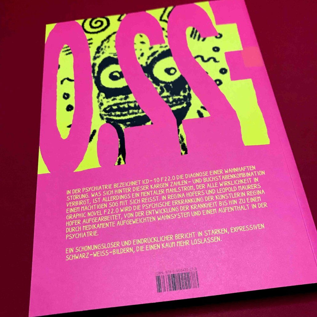 In der Psychiatrie bezeichnet ICD-10 F22.0 die Diagnose einer wahnhaften Störung. Was sich hinter dieser kargen Zahlen- und Buchstabenkombination verbirgt, ist allerdings ein mentaler Mahlstrom, der alle Wirklichkeit in einem mächtigen Sog mit sich reißt. In Regina Hofers und Leopold Maurers Graphic Novel F22.0 wird die psychische Erkrankung der Künstlerin Regina Hofer aufgearbeitet, von der Entwicklung der Krankheit bis hin zu einem Aufenthalt in der Psychiatrie.