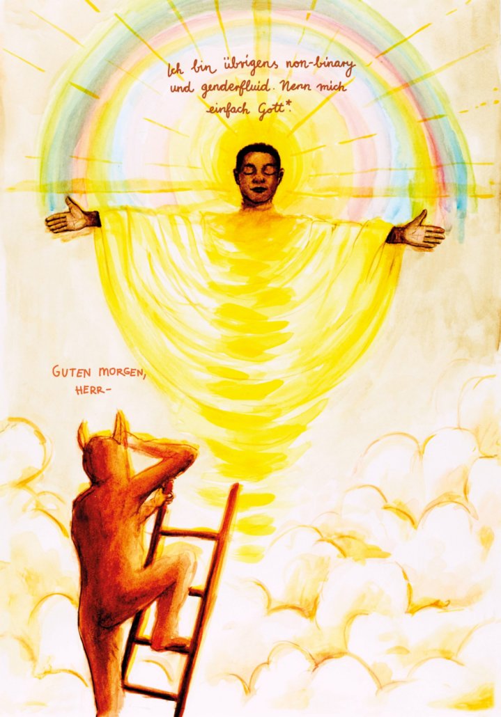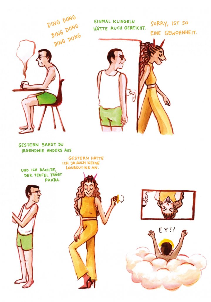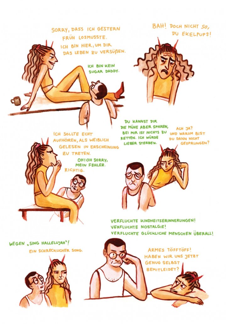Roya Soraya knöpft sich in ihrem Debüt gleich mal das größte Werk aus der deutschsprachigen Literatur vor und versetzt Goethes Figuren in die Jetzt-Zeit. Ihr Update punktet dabei nicht nur mit einer weiblichen Perspektive, sondern vor allem mit selbstbewusstem Strich und ungebremster Lust an der Dekonstruktion: ‚Ich habe großen Respekt vor Goethes Dichtkunst und der tieferen Sinnhaftigkeit hinter der Geschichte. Gleichzeitig macht es aber auch großen Spaß, einen Klassiker zu parodieren und den alten, weißen Mann von seinem Thron zu holen. An manchen Stellen konnte ich beim Lesen kaum fassen, was da stand, vor allem bei den Szenen, die Goethe später doch wieder rausgenommen hat. Die verrücktesten Comic-Szenen hat er selbst geschrieben!‘