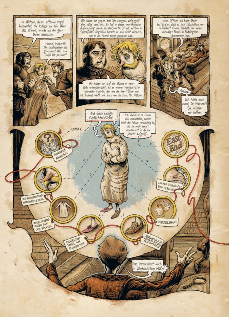 Treten Sie ein in den Geist des größten kriminalistischen Genies der Literaturgeschichte! Ein brandneuer Fall für Sherlock Holmes, den wir Leser nicht nur durch dessen Augen, sondern dank der brillanten künstlerischen Umsetzung von Benoit Dahan direkt aus seinem Gedankenpalast heraus verfolgen dürfen. Ein völlig neues Spiel beginnt!
