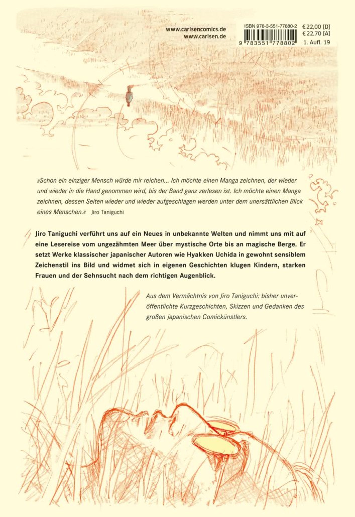 Mit Büchern wie VERTRAUTE FREMDE und DER SPAZIERENDE MANN, aber auch seinen farbigen Arbeiten VENEDIG sowie IM JAHRTAUSENDWALD hat Jiro Taniguchi unvergessliche Werke geschaffen. Nun gibt es eine neue Zusammenstellung unterschiedlicher Kurzgeschichten um mysteriöse Gefährten, poetische Begegnungen und unruhige Geister – alle bisher im deutschsprachigen Raum unveröffentlicht.