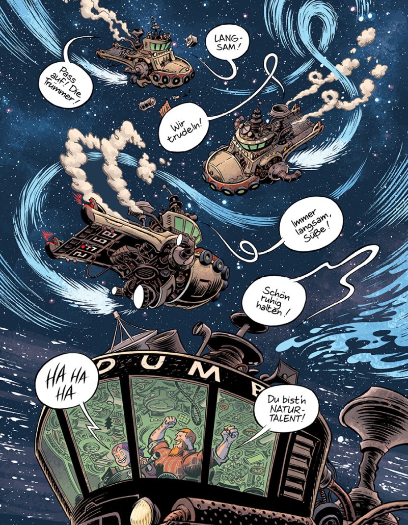 In seinem ersten Comic sowohl für junge als auch erwachsene Leser gelingt es Craig Thompson, Themen wie Familie, Freundschaft und Loyalität leichthändig mit einem rasanten Weltraumabenteuer zu verknüpfen – voller liebenswerter Figuren, verru¨ckter Aliens, spaciger Raumschiffe und ebenso kluger wie scharfer Kritik an Umweltverschmutzung und dem Raubbau an der Natur.