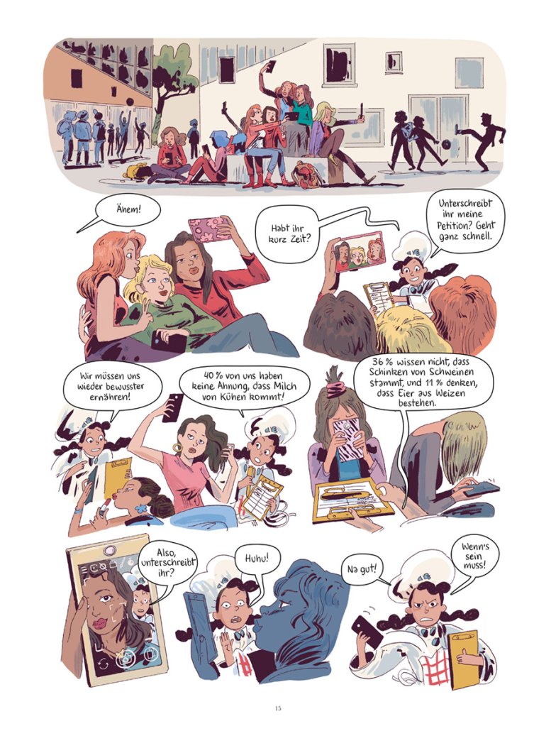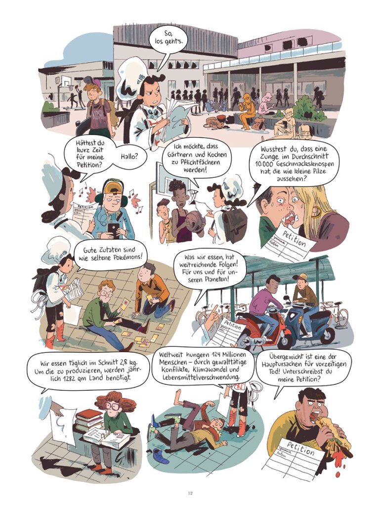 Yasmina will Kochen und Gärtnern an ihrer Schule als Pflichtfächer einführen und muss dafür fünfzig Unterschriften sammeln – eine scheinbar unmögliche Aufgabe, denn ihre Mitschüler:innen interessieren sich nur für ihre Handys und nicht die Bohne für Umwelt und Lebensmittel… Und dann muss auch noch die Pommesbude, in der ihr Vater arbeitet, schließen. Mit Hilfe von Cyril, Marco und Amaryllis ruft er kurzerhand seinen eigenen mobilen Foodtruck ins Leben. Die Rezepte auf der Speisekarte kommen natürlich von – Yasmina! Nur leider sind ihre vegetarischen Innovationen nicht von Erfolg gekrönt. Die Welt scheint definitiv noch nicht bereit für eine Ernährungsumstellung…