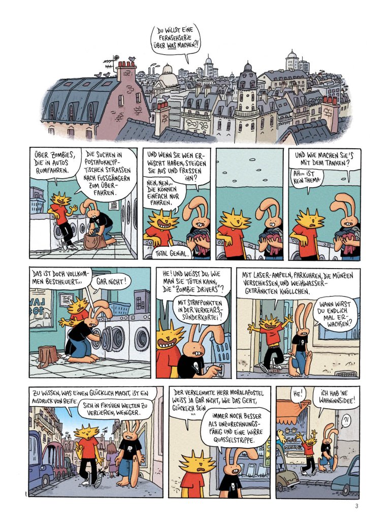 Wegen einer verlorenen Wette begleitet Richard seinen Kumpel Herrn Hase nach Saint-Mouilly, einem Dorf mit 3.250 Seelen. Dort soll ein dem Atheismus gewidmeter Tempel errichtet werden, und sie assistieren dem Regierungsbeamten vor Ort, dieses Unterfangen zu bewerben. Allerdings interessiert sie ihr eigenes Projekt viel mehr: die Entwicklung einer Fernsehserie mit Zombies, die Auto fahren.