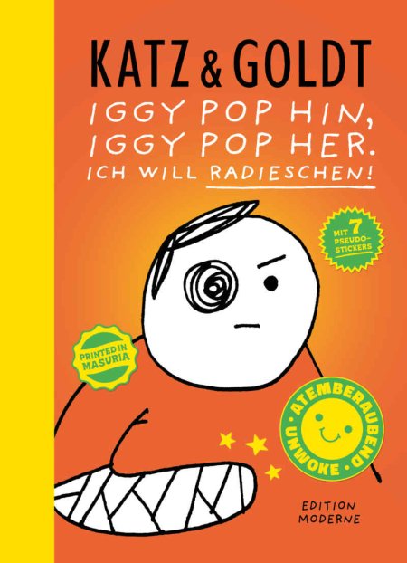 Iggy Pop hin, Iggy Pop her. Ich will Radieschen! versammelt die kompletten TITANIC-Comics von Katz & Goldt aus den Jahren 2022-2024. Die Auswahl wird ergänzt mit neuen Onepagern und Cartoons des Duos.