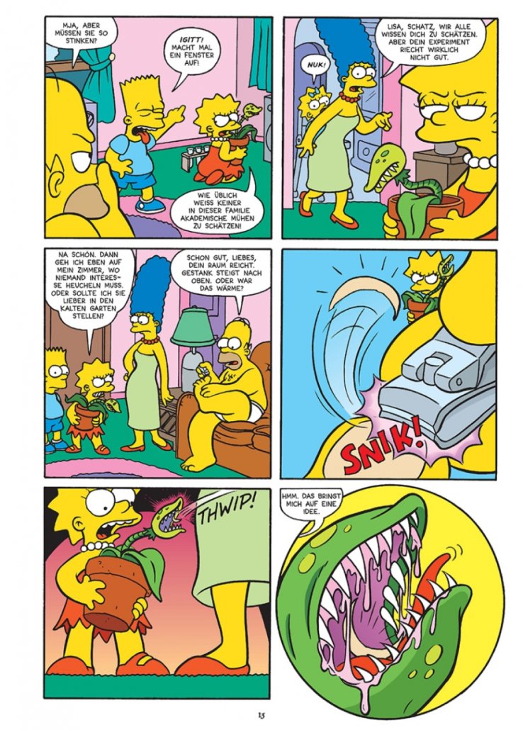 Im »Treehouse of Horror« begann 1995 die unheimliche Verbindung des gruseligsten aller Feste und der berühmtesten aller TV-Familien – unheimlich komisch und unheimlich starbesetzt! 23 Spezialausgaben der »The Simpsons«-Comics sind seitdem erschienen und bringen das Who’s Who von Springfield mit den kultigsten Klassikern aus Horror, SciFi und Fantasy zusammen. Darüber hinaus haben sich im Laufe der Zeit neben herausragenden Comic-Schaffenden wie Sergio Aragonés, Michael Allred, Paul Dini, Stan Sakai und Jill Thompson auch internationale Superstars wie Mark Hamill und Patton Oswalt sowie die Musiklegenden Alice Cooper und Lemmy Kilmister im »Treehouse of Horror« verewigt.