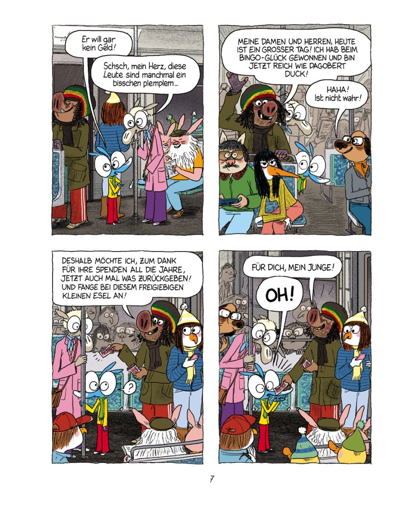 ‚Der ist ja… plemplem!‘ Ariol ist perplex: In der U-Bahn drückt ein Fremder ihm 500 Euro in die Hand. Einfach so! Der Obdachlose ist frischgebackener Lottomillionär und möchte den Leuten endlich auch mal ein bisschen Kleingeld spendieren. Fu¨r Ariols Oma steht es außer Frage, das Geld zu behalten. Aber wie soll Ariol den fröhlichen Clochard mit den Spendierhosen nur wiederfinden?