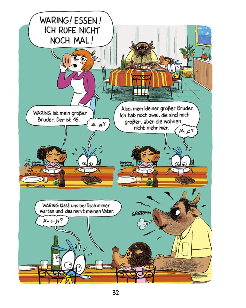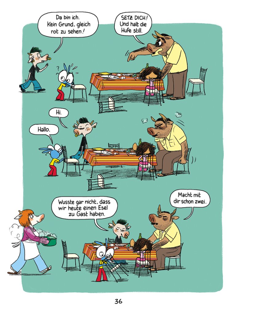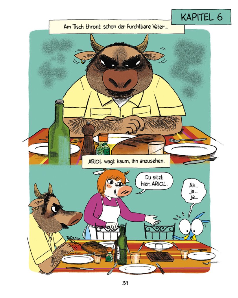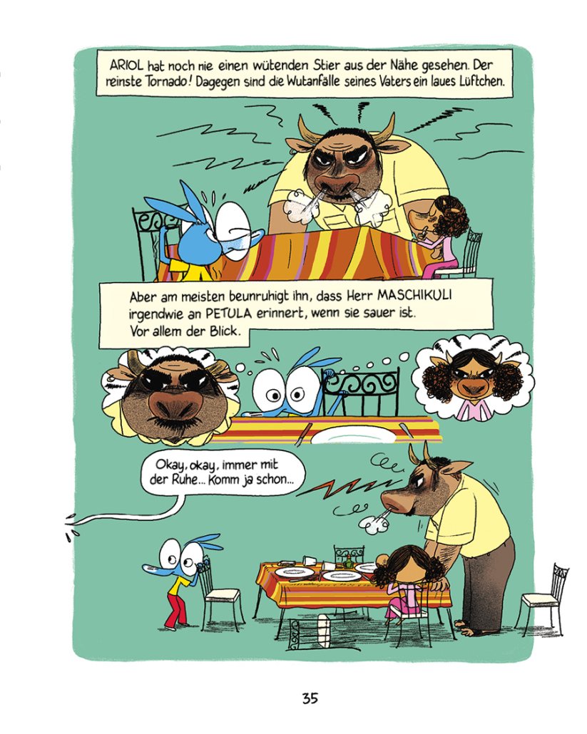 Aah… Petula. Wenn Ariol diesen Namen nur hört, wird ihm ganz schwindelig. Und heute ist er bei ihr eingeladen! Bei Petula! Seiner heimlichen Liebe! Der Kuh seiner Träume! Doch von dem Moment an, als er nervös vor ihrer Haustu¨r steht, läuft nichts nach Plan. Warum verschwindet Petula ständig und lässt Ariol mit ihrer Familie allein? Fu¨r ihren Vater, einen jähzornigen Stier, ist Ariol ein rotes Tuch: Den wu¨rde er doch zu gern auf seine Hörner nehmen. Und dann Petulas Bruder! Ein Teenager! Nervig! Und ihre Mutter erst! Die ist einfach… u¨berall!