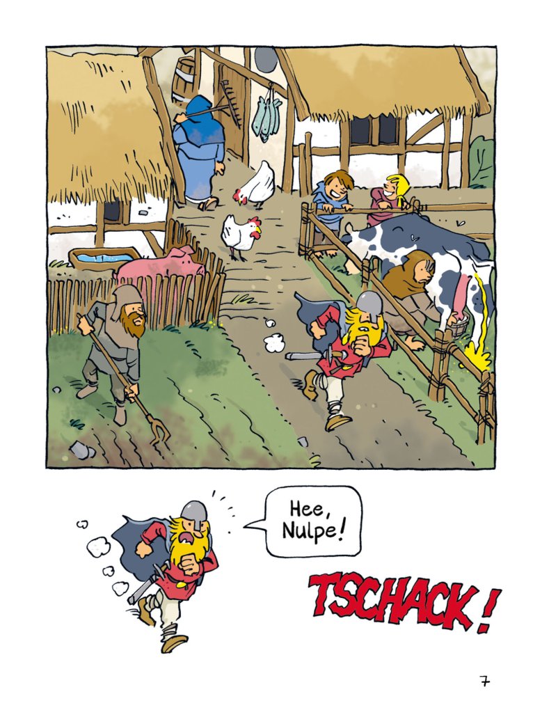 Neue Freunde sind toll. Aber wenn dir plötzlich ein waschechter Wikinger am Rockzipfel hängt – groß, immer hungrig und… na ja… nicht besonders helle – , dann hast du ein Problem! Aber wer sagt denn, dass Probleme keinen Spaß machen können? Gut, Julius hat vielleicht nicht immer Spaß, seit Gorm Grimm in sein Leben geplatzt ist. Denn der stellt sich manchmal an wie der erste Mensch! Und auch für den stolzen Wikinger ist die Begegnung mit Autos, Schraubverschlüssen und dem Stubenhocker Julius kein reines Vergnügen. Aber du, du wirst mächtig Spaß an den verrückten Abenteuern der ungleichen Freunde haben! (Und viele hundert Jahre vor unserer Zeit freuen sich auch die Wikinger – darüber dass sie Gorm Grimm endlich los sind!)