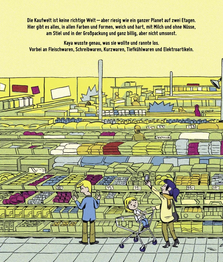Mit großer Freude am Tohuwabohu bringen Autor Jonny Bauer und Zeichner Stephan Lomp in ihrem Comic-Bilderbuch den Traum (fast) jeden Kindes zu Papier: Nur einmal ganz allein im Kaufhaus sein!