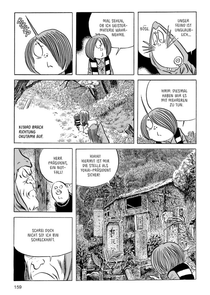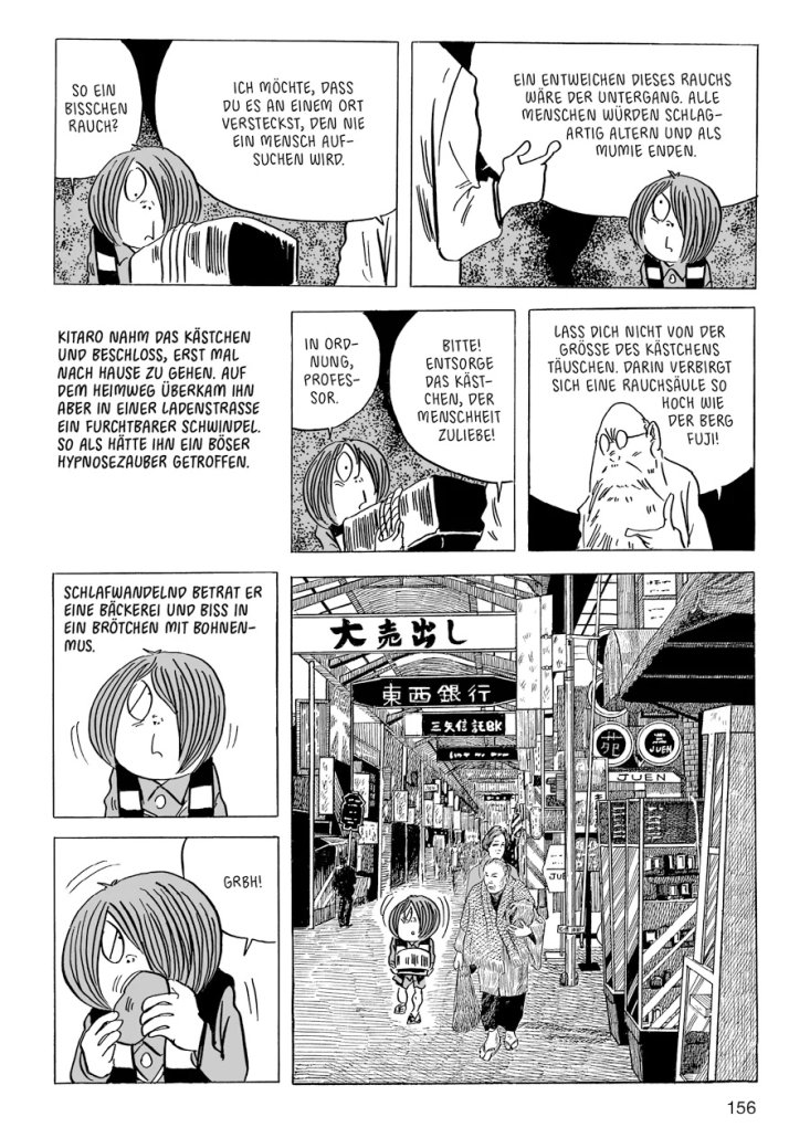 Kitaro ist die bekannteste Figur von Shigeru Mizuki, der seine Geschichten reich mit fantastischen Gestalten aus dem japanischen Volksglauben bevölkert. Vor beinahe fotorealistisch gestalteten Landschaften finden sich grotesk u¨berzeichnete Figuren: So wird das Unheimliche mit dem Komischen verbunden.