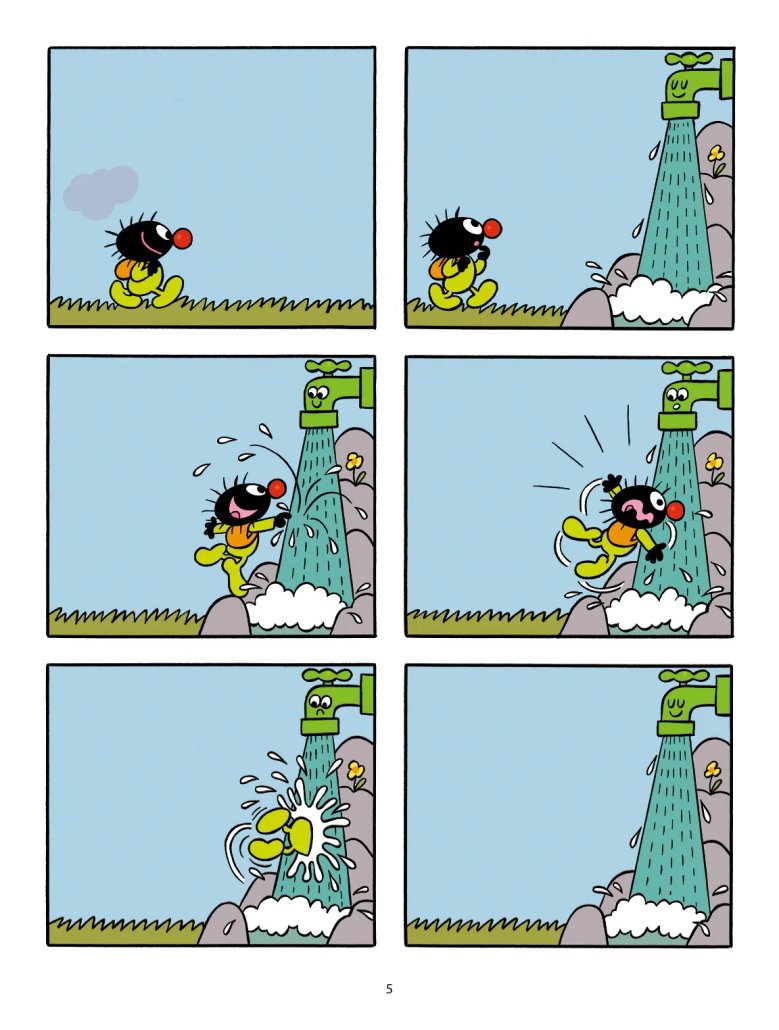 Schwupps! Kaum hat der kleine Strubbel sich unter einen geheimnisvollen Wasserhahn gestellt, trägt ihn dessen Strahl auch schon schnurstracks in einen wunderschönen japanischen Garten. Ganz matschig von seiner Wildwasserfahrt landet Strubbel glücklicherweise im Badehaus des reinlichen Fräuleins Washiko. Doch all das Schniegeln und Striegeln ist für die Katz als der Schmutzfink Duschnix auftaucht, der nichts als schmutzigen Unfug im Kopf hat. Keine Frage, dass Strubbel da begeistert mitmacht! Arme Washiko…