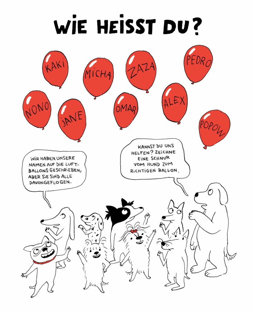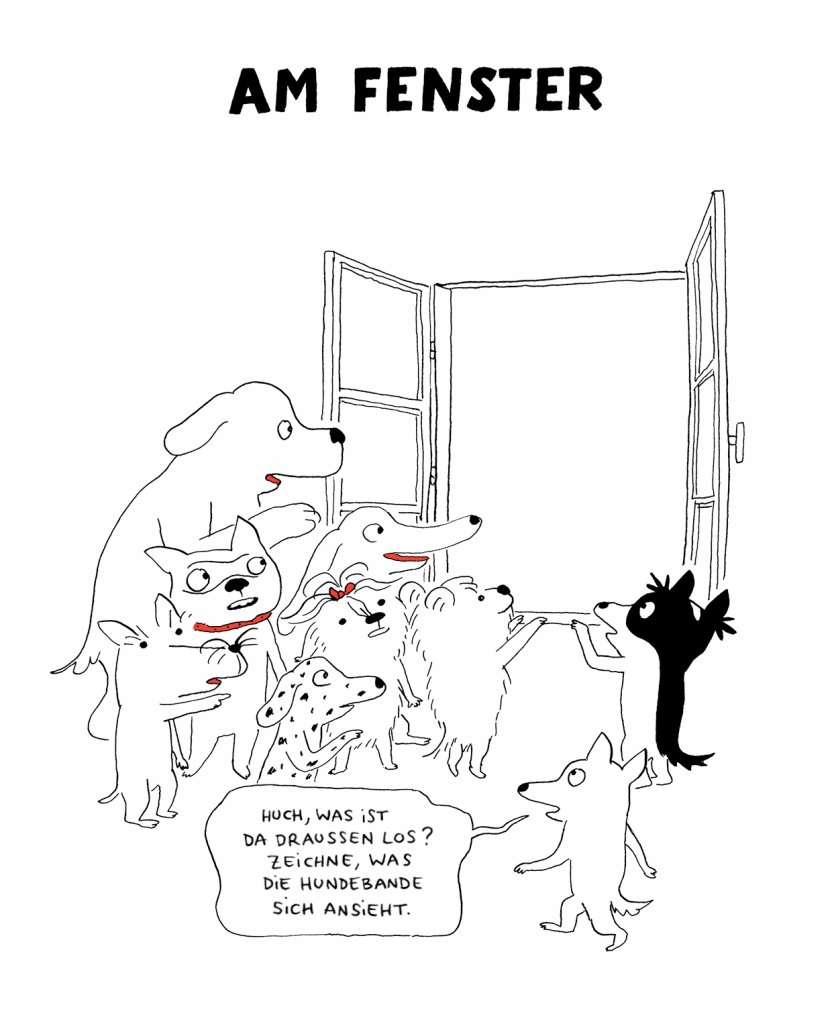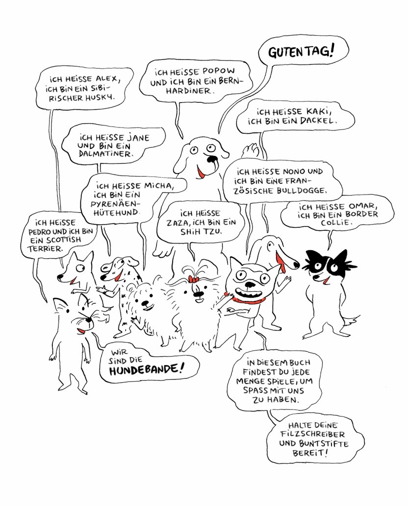 Diese Hunde wollen spielen! Die Erlebnisse von Dorothée de Monfreids charmanter Hundebande begeistern regelmäßig Kinder wie Erwachsene. Nun laden die vierbeinigen Hauptdarsteller:innen von ‚Schläfst du?‘ und ‚Keine Lust‘ dazu ein, die Zeichenstifte von der Leine zu lassen.