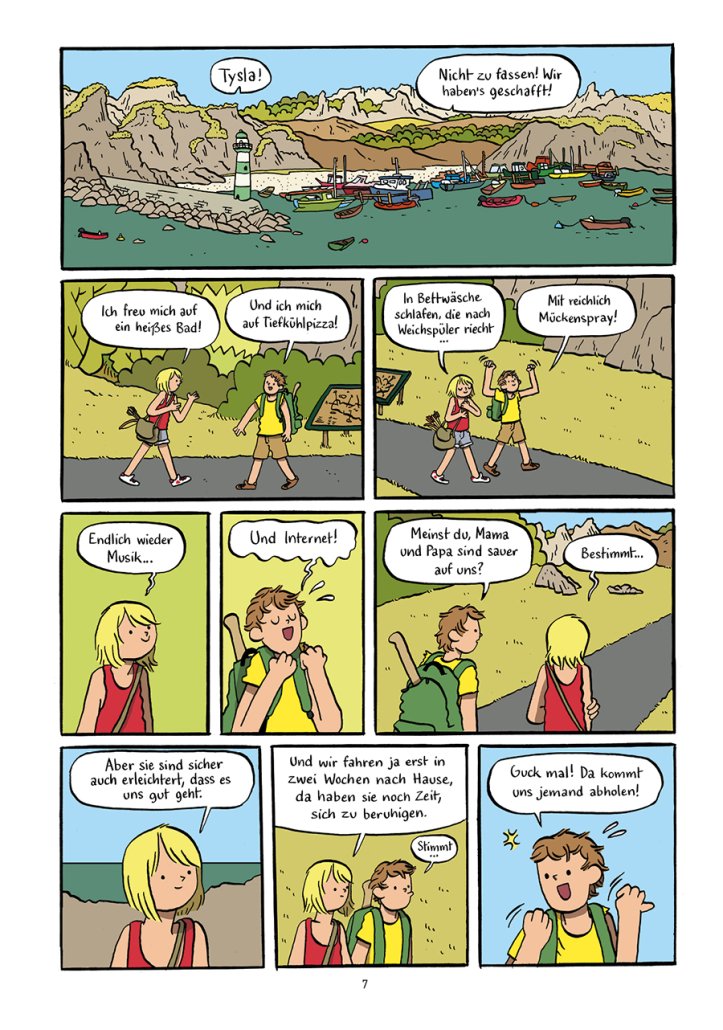 Die Tradition will, dass jedes Kind an seinem 14. Geburtstag einen Monat lang auf einer einsamen Insel überleben muss. Für Stig und Tilde ist es Zeit, sich der Herausforderung zu stellen. Nach einigen Irrfahrten kommen die Zwillinge nun endlich auf der richtigen Insel an. Heiße Duschen, WLAN, Barbecue von früh bis spät – das muss der Himmel sein! Aber es gibt ein Problem: Zwei Jungs tyrannisieren die anderen Kinder, und die Gemeinschaft ist in zwei Lager gespalten. Können Stig und Tilde den Frieden wiederherstellen?