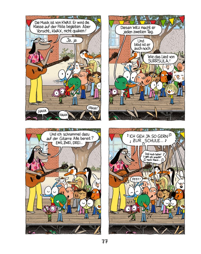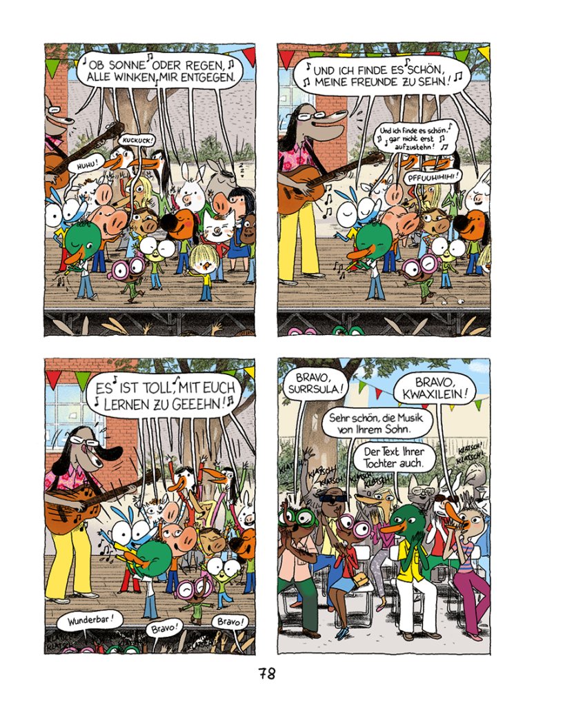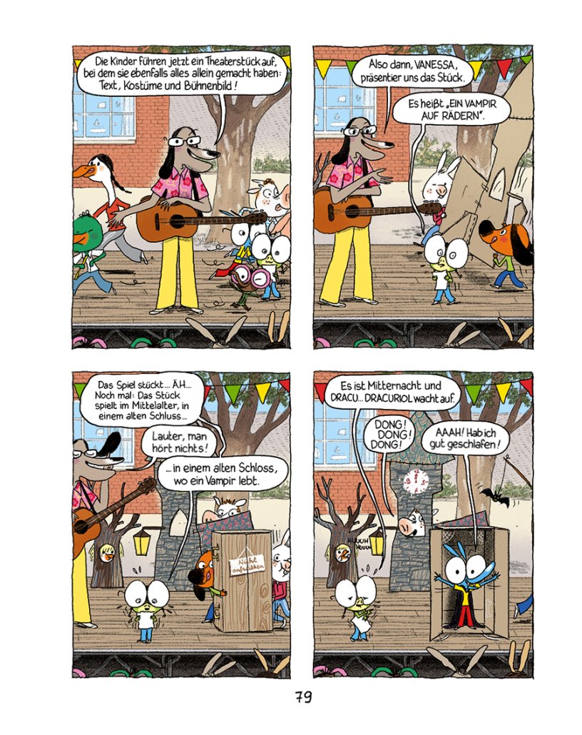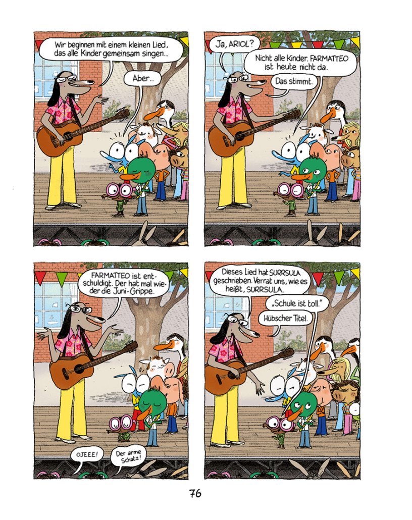 Mit Herrn von Schnapp hat Ariol echt Glück gehabt: Sein Klassenlehrer ist nämlich kein harter Hund. I wo, der schlecht rasierte Spaniel mit der Brille hat seine Schäfchen (und Esel) auch anders im Griff – und für jede Gelegenheit eine lustige Geschichte oder ein kleines Spielchen auf Lager, damit das Lernen mehr Spaß macht. Also auf in die Hundeschule! Holt die Hefte raus und schnappt euch einen Stift, der Unterricht kann losgehen…§Emmanuel Guibert und Marc Boutavant haben mit Ariol eine echte Identifikationsfigur geschaffen. Oder in den Worten eines kleinen Lesers: „ARIOL, das liest man erst so und plötzlich passiert’s einem voll selbst.“