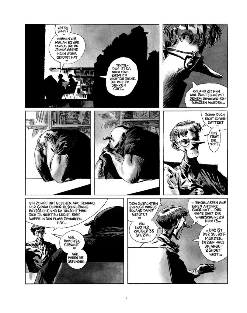 Die Qualen des unförmigen Riesen Polza Mancini und jene seiner Opfer werden am Ende der Reise nebeneinandergestellt: Jahre nach Mancinis Verhör lässt Manu Larcenet die beiden Polizisten einem Fernsehteam von ihren Ermittlungen berichten – und stellt damit die Eindrücke und Erwartungen des Lesers auf den Kopf. Wie ein Puzzlespiel fügen sich die einzelnen Teile der Erzählung zu einem einheitlichen Ganzen und lassen Polza Mancinis abgründige Seele erahnen.