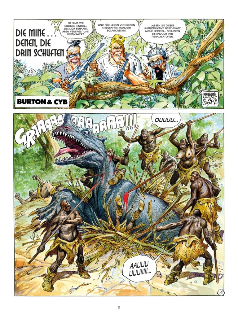 Die humorvolle Science-Fiction-Serie Burton & Cyb von Szenarist Antonio Segura und Zeichner José Ortiz (Hombre, Juan der Lange) entstand 1987 für die spanische Zeitschrift Zona 84 und sollte sich schnell zu einem internationalen Erfolg entwickeln. Der als Parodie auf den kernigen amerikanischen Actionhelden angelegte Burton und sein schießwütiger Kumpel Cyb (kurz für »Cyborg«) durchkreuzen in ihrem heruntergekommenen Raumschiff die Weiten des Alls auf der Suche nach dem schnellen Geld. Im Verlauf ihrer aberwitzigen Abenteuer versuchen sich die sympathischen Weltraum-Ganoven unter anderem als Waffenhändler und Schatzjäger und bekommen es mit leichtgläubigen Außerirdischen, Graf Dracula, der Mumie und Frankensteins Monster zu tun.