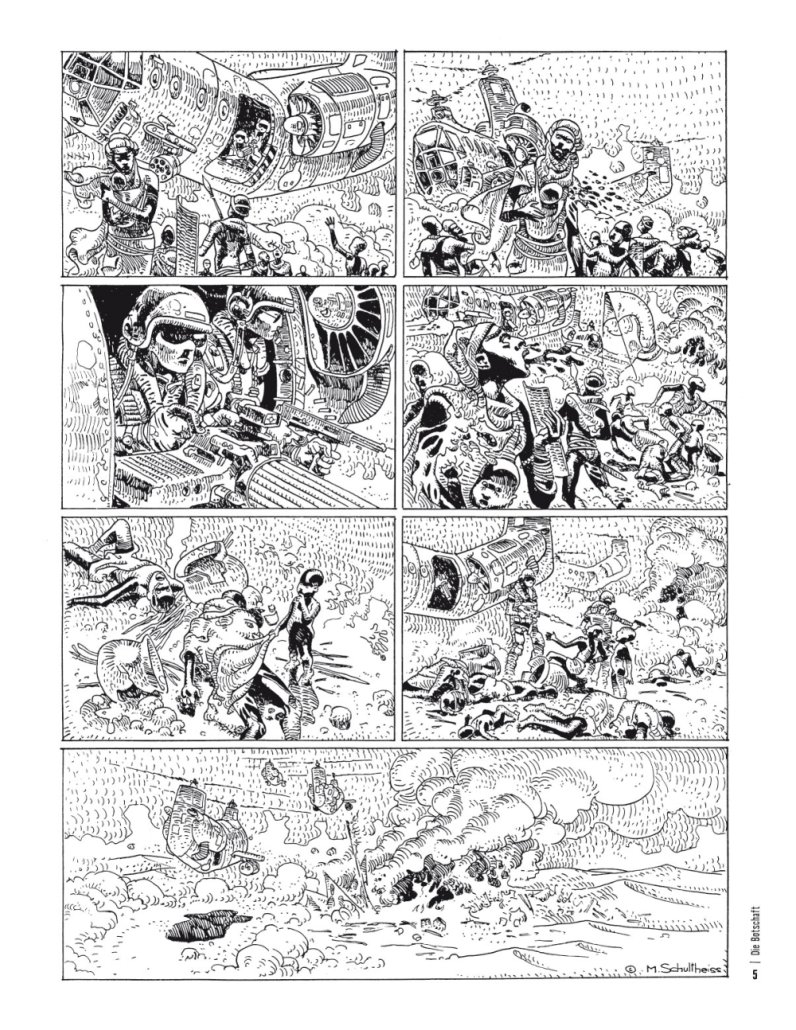 Gut vier Jahrzehnte nachdem das auf Fantasy und Horror spezialisierte Comicmagazin Menschenblut die Fortsetzungsgeschichte Die Botschaft zum Abschluss gebracht hat, liegt der legendäre Science-Fiction-Thriller aus der Feder des deutschen Ausnahmekünstlers Matthias Schultheiss (Die Haie von Lagos, Die Wahrheit über Shelby) nun erstmals in Albumform vor. Nichts für zartbesaitete Gemüter!