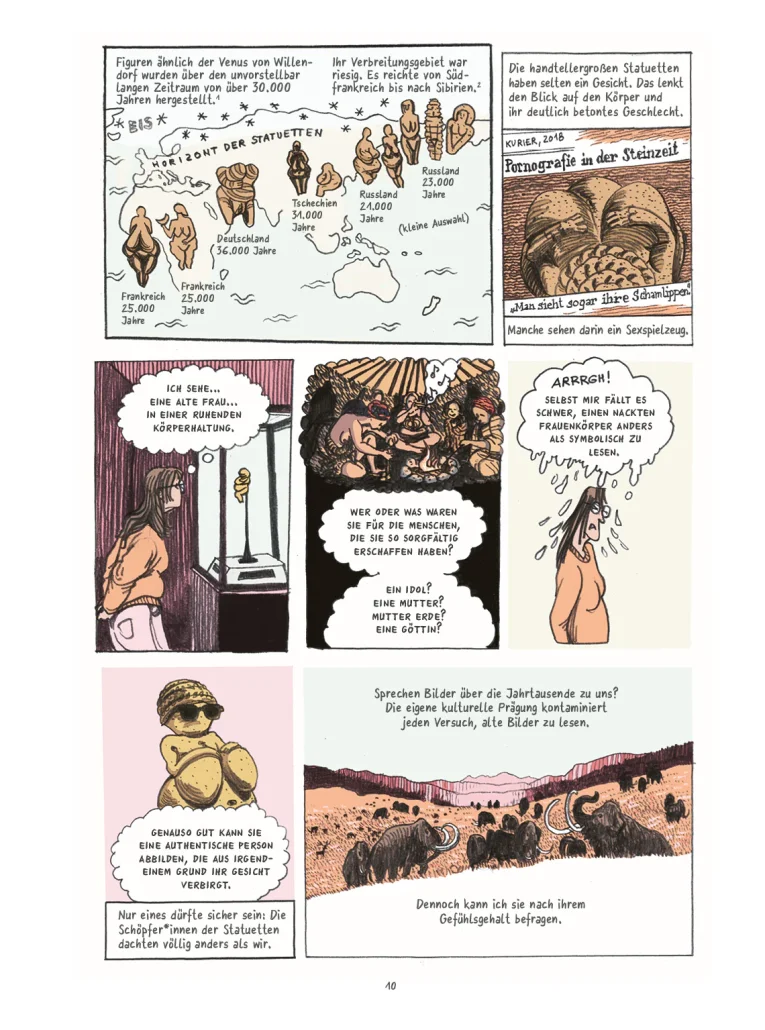 Rentiere naschen noch ein paar Fliegenpilze, ehe sie der nahenden Kälte entfliehen, ihnen voraus eine Gruppe Nomad:innen. Auf ihrem Weg ins Winterlager unternehmen sie eine letzte große Jagd – Kinder werden geboren, andere sterben, die Venus von Willendorf wird geschaffen. Doch zeigt sie wirklich eine Göttin? Oder war sie Werkzeug der Schamanin, ein Avatar zur Reise durch Geisterwelten, wie sie sich bis heute in Mythen und Märchen finden?