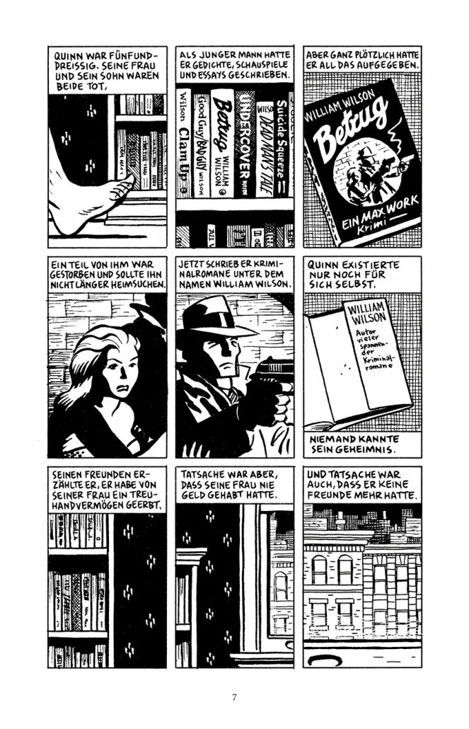 1994 wurde Paul Austers „Stadt aus Glas“ von Paul Karasik und David Mazzucchelli als Comic adaptiert und ist inzwischen zum Klassiker avanciert. Nun sind auch die beiden anderen Romane von Paul Austers gefeierter „New-York-Trilogie“ grafisch umgesetzt: „Schlagschatten“ und „Hinter verschlossenen Türen“. In drei brillanten Variationen klassischer Detektivgeschichten macht sich Paul Auster New York City zu eigen. Die Stadt wird zu einer seltsamen, fesselnden Landschaft, in der Identitäten verschmelzen oder verschwinden, Verfolgte zu Verfolgten werden und sich in ein Spiel mit den eigenen Erwartungen verstricken.