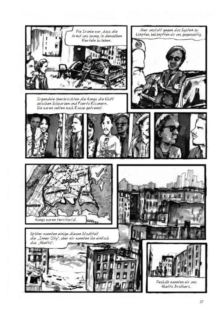 Anfang der 70er Jahre ist das Leben in der Bronx geprägt von heruntergekommenen Mietshäusern, Drogen und Kriminalität. Um zu überleben, schließen sich viele junge§Bewohner Gangs an. Die größte Gang mit annähernd 2000 Mitgliedern sind die Ghetto Brothers, angeführt von Benjamin Melendez, einem Sohn jüdischer Einwanderer aus Puerto Rico. Melendez wurde 1971 in das Licht der Öffentlichkeit gerückt, als er ein vielbeachtetes Friedensabkommen zwischen den New Yorker Jugendgangs initiierte. Statt durch Bandenkriege machte die Bronx nun durch Hip-Hop, DJs und die Graffiti-Szene von sich reden. In dieser Aufbruchsstimmung begab sich Benjamin Melendez auf eine andere Reise: der Suche nach seinen jüdischen Wurzeln.§Ghetto Brother erzählt die wahre Geschichte von Benjamin Melendez, einem vergessenen Akteur der New Yorker Popkultur. Autor und Fotograf Julian Voloj und Zeichnerin Claudia Ahlering haben eine Graphic Novel geschaffen, die Hip-Hop-Kultur lebendig werden lässt und den Leser in jüdische Lebenswelten in New York eintauchen lässt.