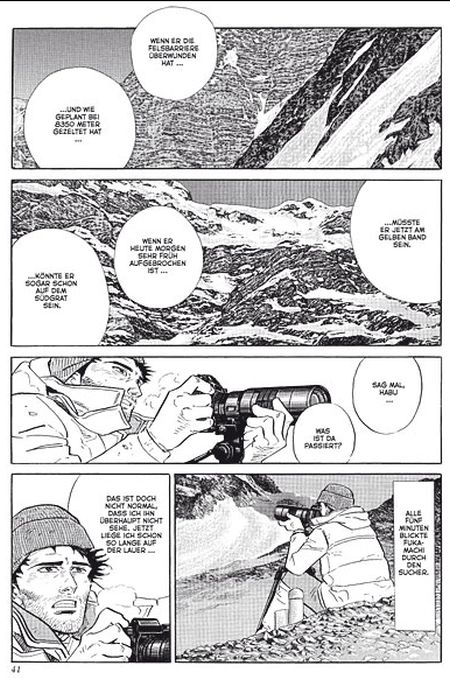 Der Fotograf Fukamachi folgt Habu von Weitem mit der Kamera auf dessen spektakulärem Alleingang auf den Everest. Vor der letzten Etappe muss Fukamachi ihn verlassen. Zusammen mit dem Sherpa Ang Tshering wartet er im Basislager, während Habu wegen eines plötzlichen Wetterumschwungs auf über 8000m festsitzt.