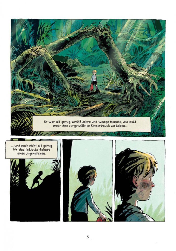 William Goldings Roman »Herr der Fliegen« gilt als eines der einflussreichsten Bücher der Weltliteratur. Seine pessimistische Version einer Robinson-Crusoe-Geschichte besticht nicht nur durch ihre dramatische Handlung, sondern vor allem durch ihre Aussage über die angeborene Gewaltbereitschaft des Menschen und seine Tendenz zur tyrannischen Herrschaft. Die Bildsprache dieser Adaption von Aimée de Jongh fängt vor allem die Kontraste von Goldings Werk – den Horror der paradiesischen Insel, die Grausamkeit der spielfreudigen Kinder – grandios ein.