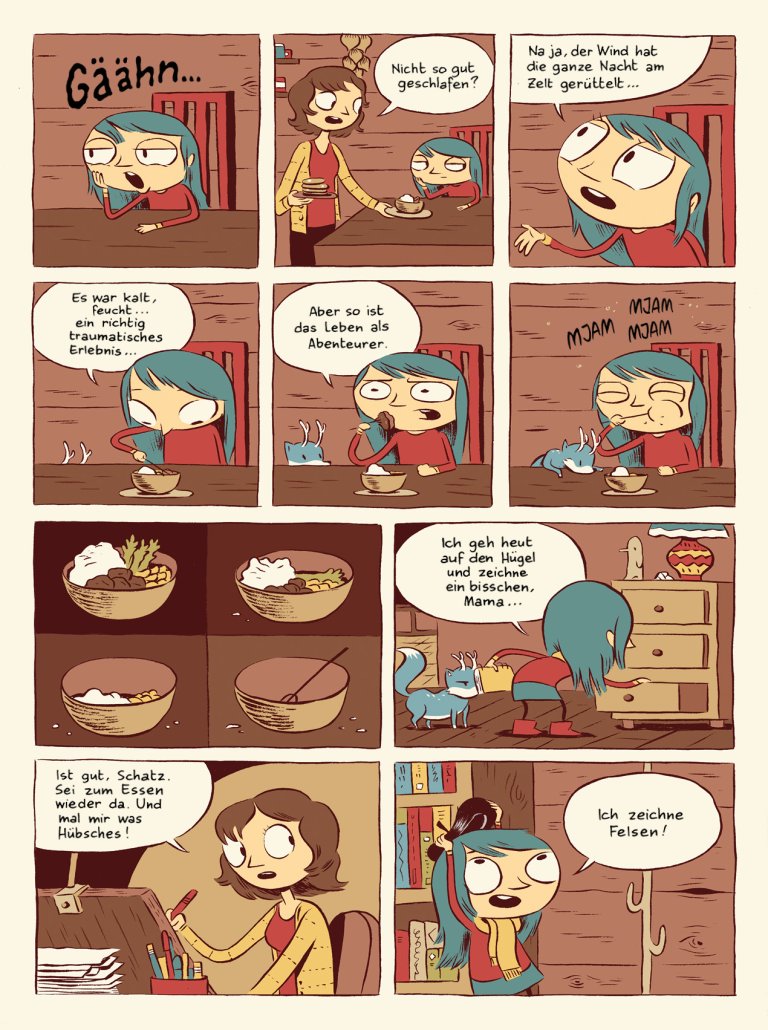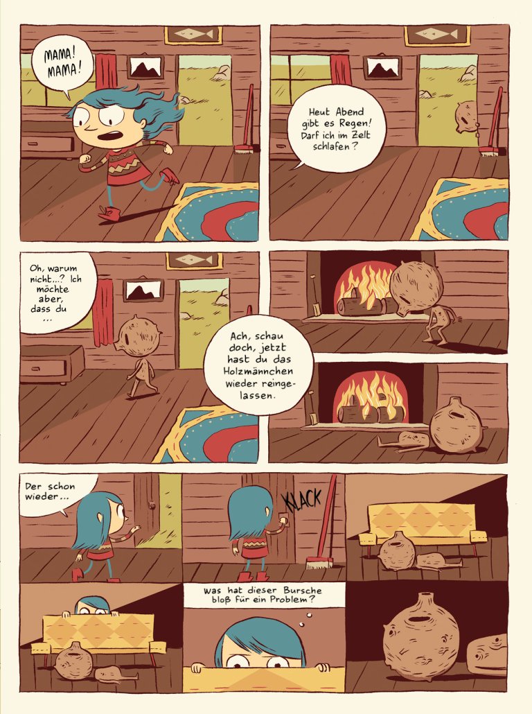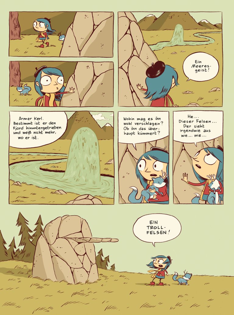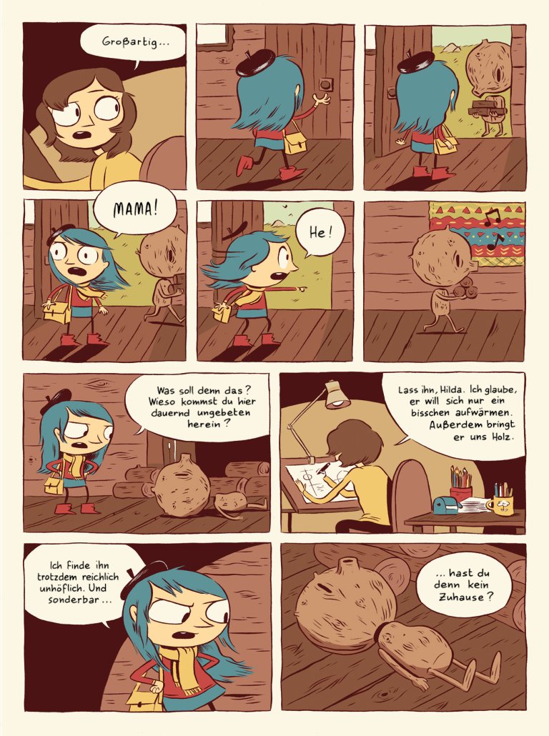 Hilda liebt es, die verwunschenen Täler ihrer nordischen Heimat zu durchstreifen und Freundschaft mit den skurrilsten Geschöpfen zu schließen. Die Suche nach einem Bergtroll aber erweist sich als gefährliches Abenteuer – die blauhaarige Entdeckerin wird inmitten der Wildnis von einem heftigen Schneesturm überrascht. Auf ihrer Suche nach dem Heimweg entgeht Hilda nur um Haaresbreite dem mächtigen Fuß eines ahnungslosen Riesen und trifft schließlich auf ein einsames Holzmännchen…§§Eine unerschrockene Heldin und eine liebevoll-fantastische Welt machen Luke Pearsons „Hilda“ zum aufregendsten All-Age-Comic der letzten Jahre.