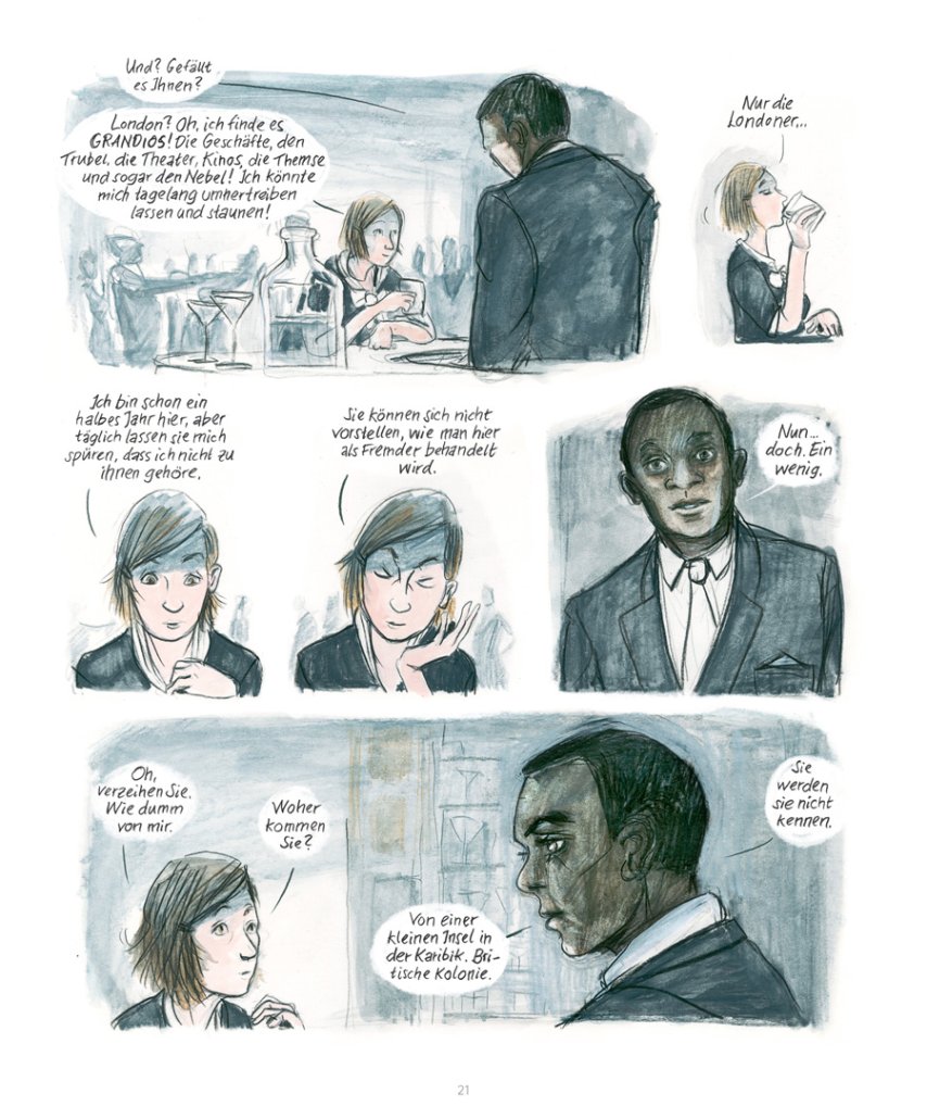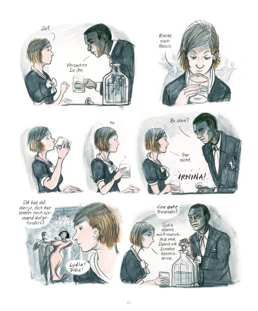Die ehrgeizige Irmina reist Mitte der 1930er Jahre nach London, um eine Ausbildung zur Fremdsprachensekretärin zu beginnen. Dort lernt sie den dunkelhäutigen Howard kennen, dem sie sich im Streben nach einem selbstbestimmten Leben verbunden fühlt. Durch den klugen und zielstrebigen Oxfordstudenten beginnt Irmina ihren Blick auf die Welt zu öffnen. Doch findet ihre Liebschaft ein jähes Ende, als Irmina, bedrängt durch die politische Situation, nach Berlin zurückkehrt. Im nationalsozialistischen Deutschland wird klar, dass ihr gesellschaftlicher Aufstieg nur möglich ist, wenn sie die Augen vor den Verbrechen des Regimes verschließt. Und die politischen Ereignisse eskalieren weiter und weiter…§§Mit „Irmina“ legt Barbara Yelin ihr Glanzstück vor: ein packendes Drama um die Entscheidung zwischen persönlicher Integrität und kompromisslosem Ehrgeiz. Aufwendig recherchiert nach einer wahren Geschichte, erzählt sie in atmosphärisch-dichten Bildern einen Werdegang voller Brüche, der aber auch exemplarisch für die Mitschuld durch Wegsehen und Vorteilsnahme vieler im Nationalsozialismus steht.