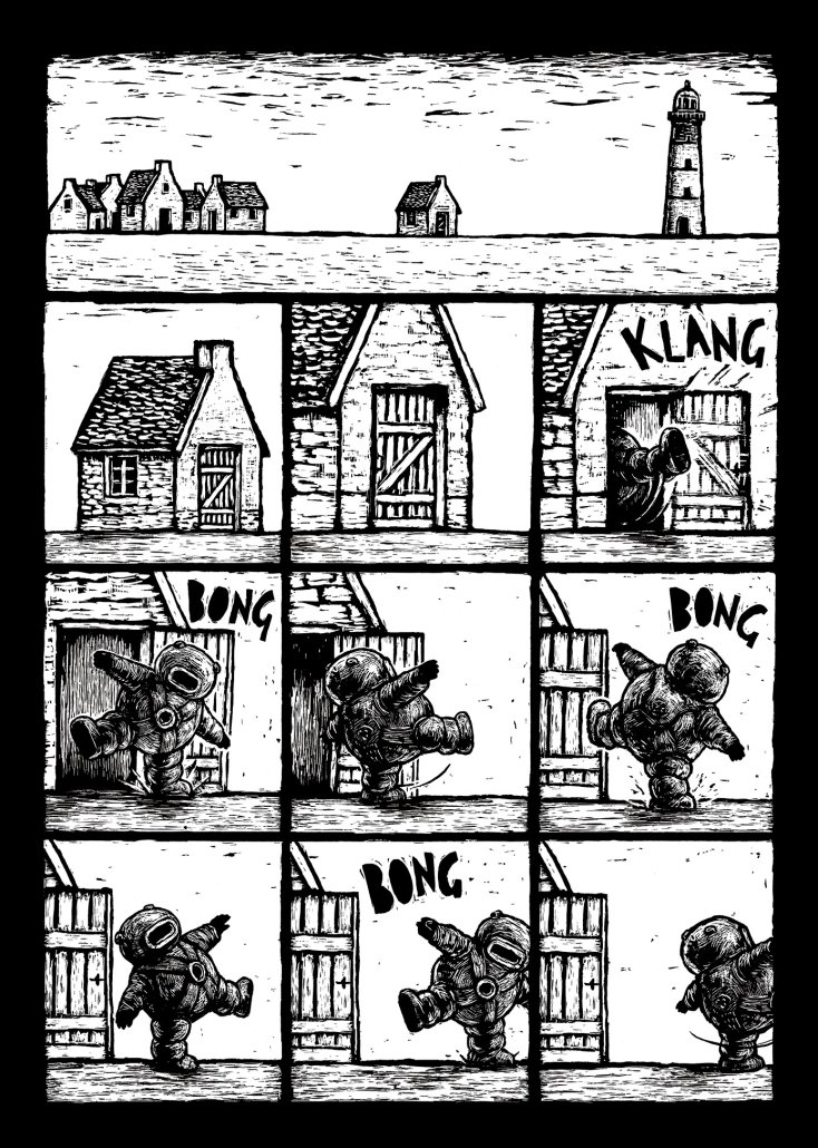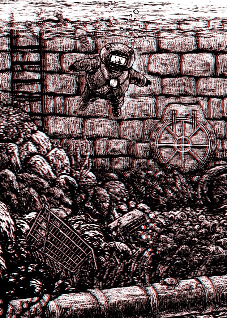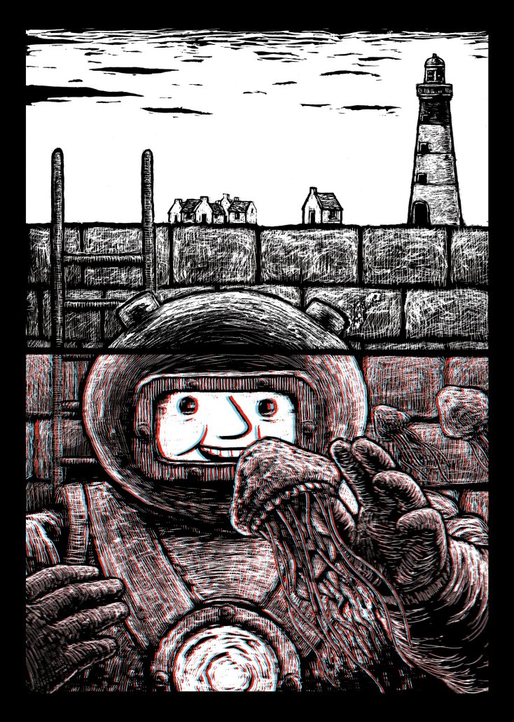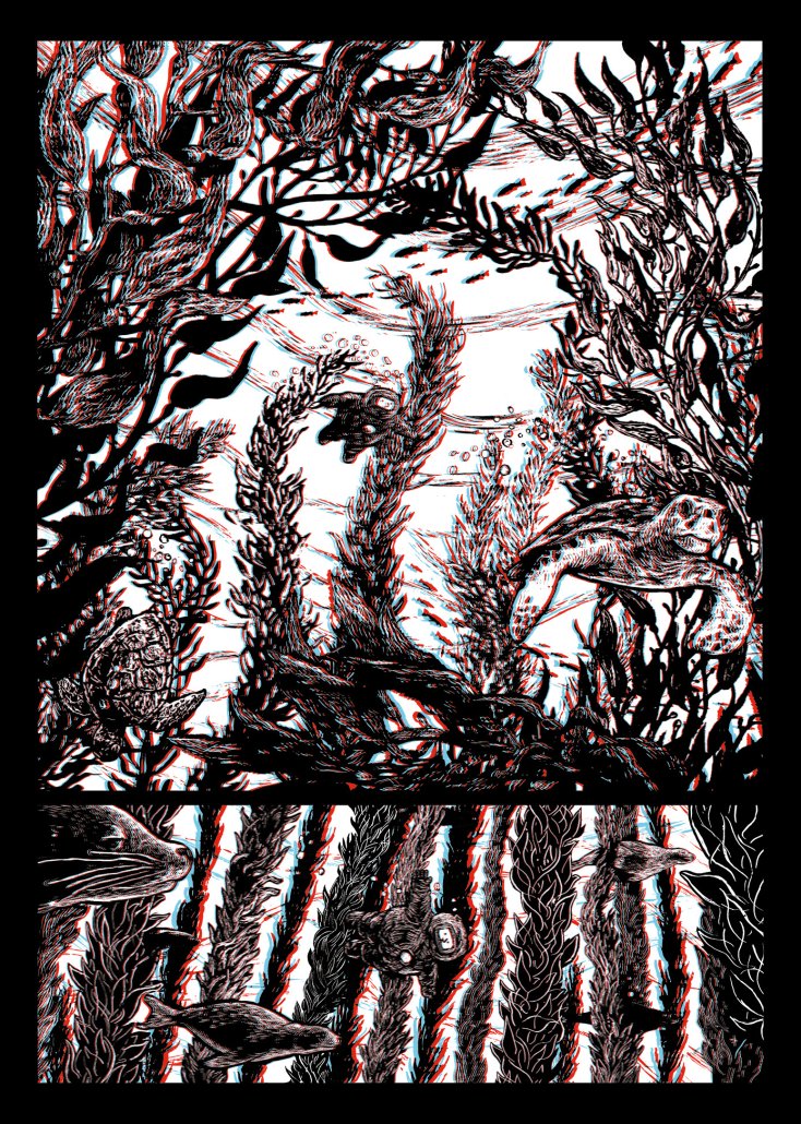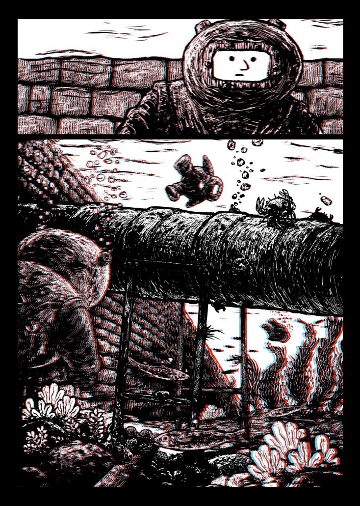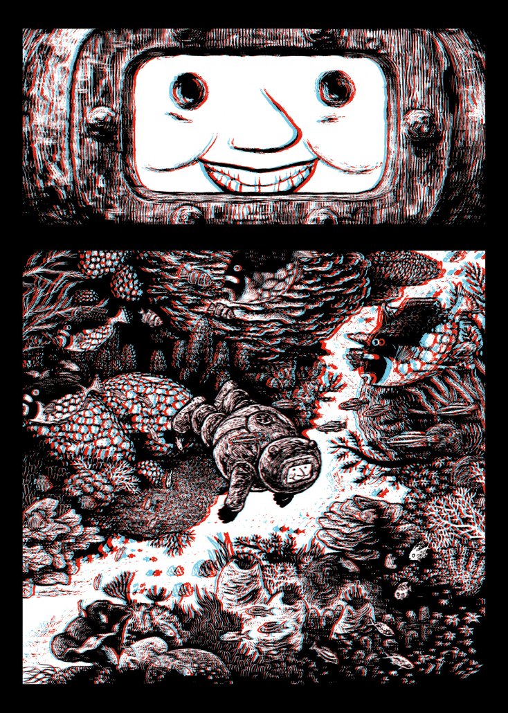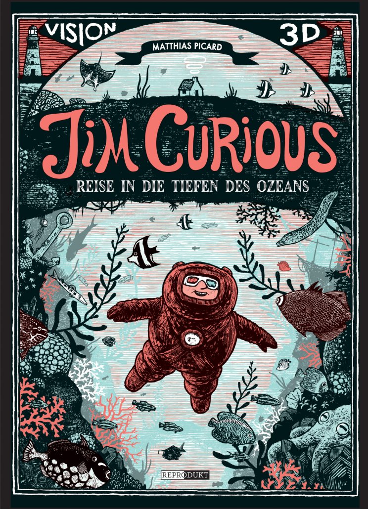 In seinem altertümlich anmutenden Taucheranzug schickt Jim Curious sich an, die Wunder des Meeres zu erkunden. Vorbei an Fischen aller Art geht es hinab zum unheimlichen Wrack einer spanischen Galeone. Jim Curious durchschreitet das versunkene Atlantis und taucht schließlich bis in die dunkle Welt der Tiefsee, in der es die bizarrsten Monster zu bestaunen gibt.§§JIM CURIOUS ist ein unvergleichlicher Tauchausflug auf Papier. Dank atemberaubender 3-D-Effekte gewinnt Matthias Picards Unterwasserwelt buchstäblich an Tiefe, Fischschwärme erwachen zum Leben, Schiffswracks locken mit geheimnisvollen Schatten… §§Seite an Seite mit Jim Curious gibt es in dieser spek-takulären Mischung aus 3-D-Comic und -Bilderbuch überall etwas zu entdecken. Für große wie für kleine Abenteuer.