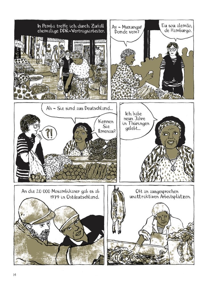 Von 1979 bis 1991 waren um die 20.000 Vertragsarbeiter§aus Mosambik in der DDR beschäftigt.§Ihr auf vier Jahre befristeter Aufenthalt sollte§dazu dienen, ihnen eine Ausbildung zu ermöglichen§und Berufserfahrung zu sammeln, um nach§ihrer Rückkehr zum Aufbau eines unabhängigen§sozialistischen Mosambiks beizutragen.§Die Realität sah anders aus. Die „Madgermanes“,§wie sie in Mosambik genannt werden, eine Wortschöpfung§aus „Verrückte Deutsche“ und „Made§in Germany“, kehrten in ein vom Bürgerkrieg§völlig zerstörtes Land zurück. Für ihre Berufsausbildung§gab es keine Verwendung, und der§von der Regierung treuhänderisch einbehaltene§Lohn wurde nie ausgezahlt …§Birgit Weyhe recherchiert diese kaum bekannte§Fußnote deutsch-mosambikanischer Geschichte,§indem sie die Betroffenen selbst zu Wort kommen§lässt. Sie dreht die übliche Perspektive eines§deutschen Blicks auf die Welt um und porträtiert§zugleich einen Staat vor dessen Untergang.§Durch subtiles Einfügen von Erinnerungsobjekten§und mit al…