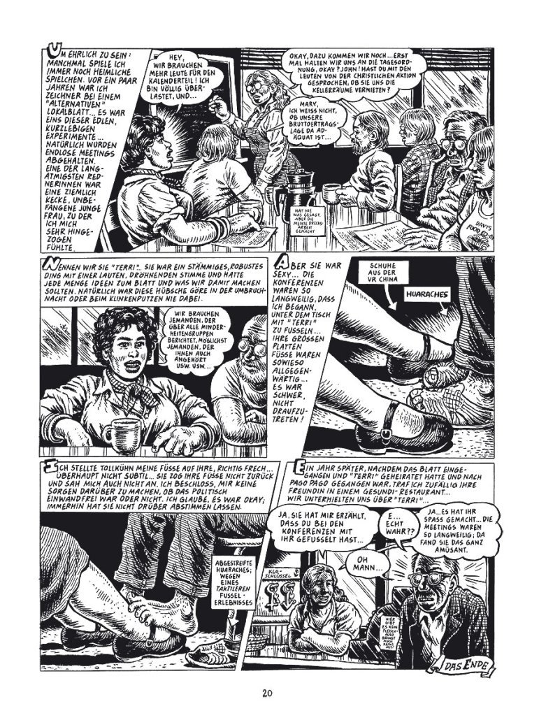 Nach NAUSEA legt Reprodukt nun den zweiten Band einer Buchreihe mit Geschichten der Underground-Ikone Robert Crumb vor. Die hierin gesammelten Episoden tragen noch sta¨rkere autobiografische Zu¨ge als die Literaturadaptionen in NAUSEA, beschreibt Robert Crumbs MEIN A¨RGER MIT DEN FRAUEN doch sein ureigenstes Thema.Ob es nun die ersten puberta¨ren Anna¨herungsversuche unter der Schulbank sind, seine vom LSD gepra¨gte Sicht auf die Freizu¨gig- keiten des Summer of Love oder aber die Plagen der Midlife- Crisis: Robert Crumbs Schwa¨che fu¨r dralle Frauenhintern und stramme Waden bleibt seit nunmehr einem halben Jahrhundert die wichtigste Inspirationsquelle seiner polarisierenden Comics.