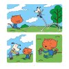 In die Wolken schauen und träumen, was könnte es Schöneres geben? Findet Pelle. „Na, hoch zu ihnen und Hallo gesagt“, ist Bruno da ganz anderer Meinung. Schließlich kann man mit seinen frisch erfundenen Hüpfschuhen ganz große Sprünge machen. Ist das ein Spaß, federleicht über den Himmel zu tollen, inmitten der Luftschlösser, Wolkentiere und Watteberge. Doch diese dunkle Wolke, aus der es rumpelt und blitzt, die ist doch ein bisschen unheimlich…§§Die Abenteuer der ungleichen Freunde Pelle und Bruno zeigen Ulf K. von seiner lustigsten und fantasievollsten Seite. Der Verzicht auf Text macht „Pelle und Bruno“ schon für die Kleinsten zur vergnüglichen Lektüre.