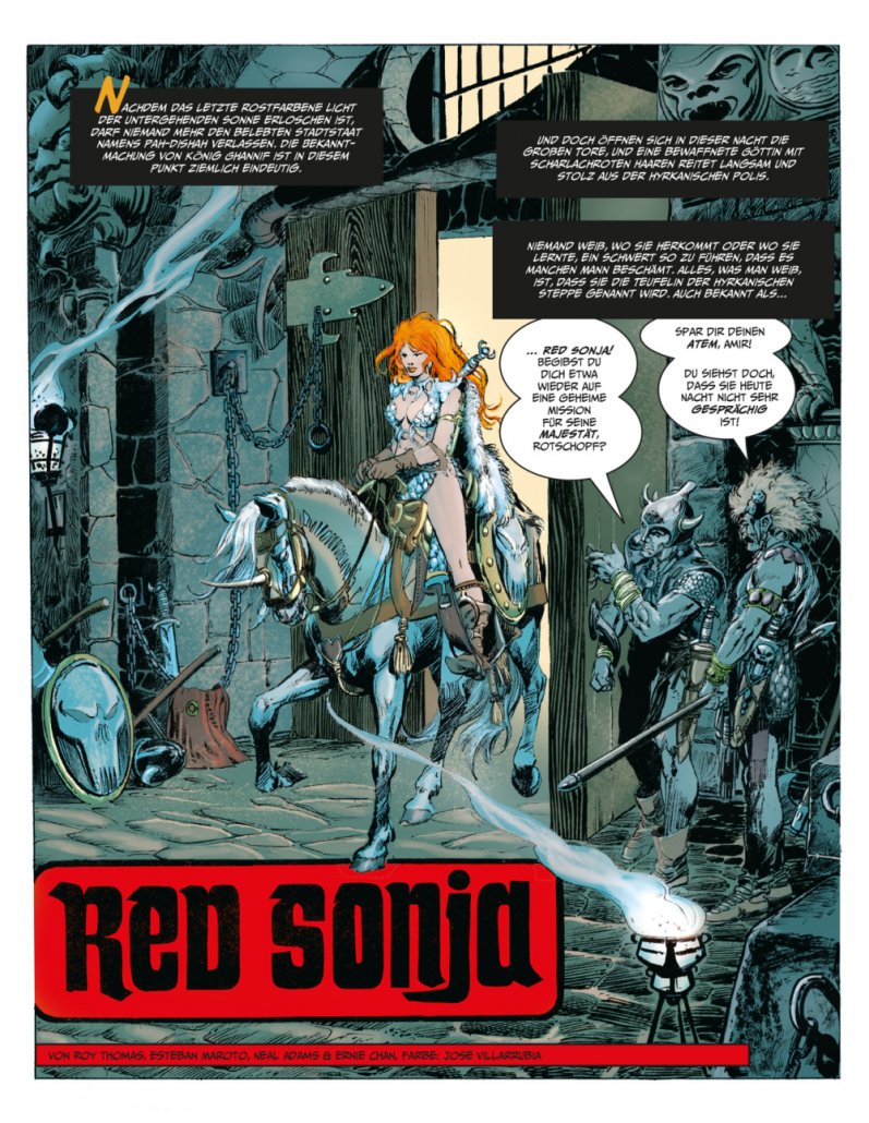 Dieser Auftaktband präsentiert neben den klassischen, von November 1975 bis November 1976 erschienenen Geschichten von Red Sonja: She-Devil with a Sword zusätzlich eine von den Ausnahmekünstlern Esteban Maroto und Neal Adams gestaltete Story sowie ein Vorwort von Roy Thomas.