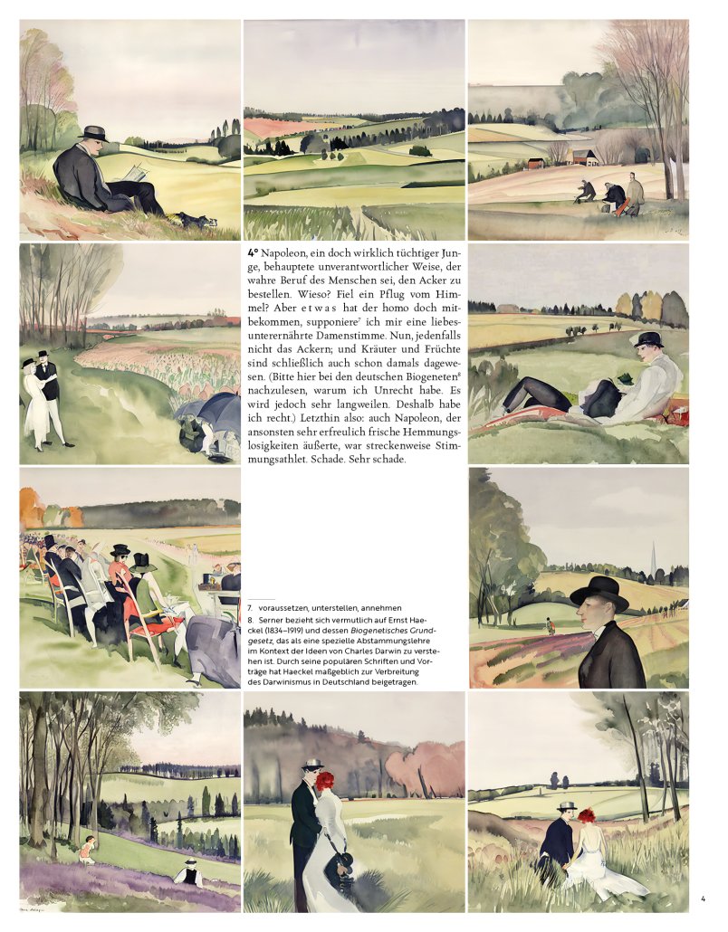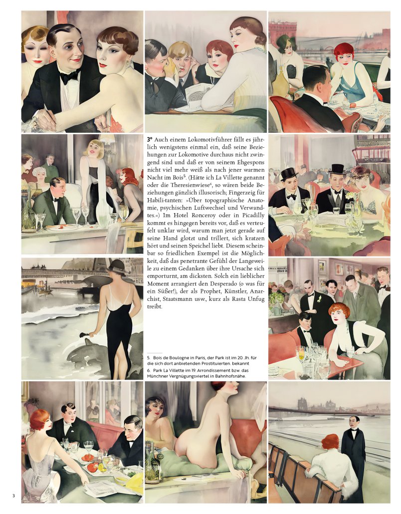 Der mittlerweile gemeinfreie Text wurde von mir als Basis für diesen experimentellen Comic verwendet, in dem ich stellenweise das Original, stellenweise freie Assoziationen dazu in eine speziell dafür vorbereitete Generative Bild KI-eingespeist und die so entstandenen Bilder montiert habe. Kapitel für Kapitel entstand so Serners dadaistische Welt in Bildern, um sie neuen Leser:innenkreisen zugänglich zu machen.‘